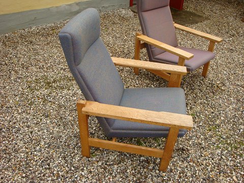 SoldResting chairs in oak with wool designed by Hans Wegner from Getama furniture factory 5000 m2 showroom