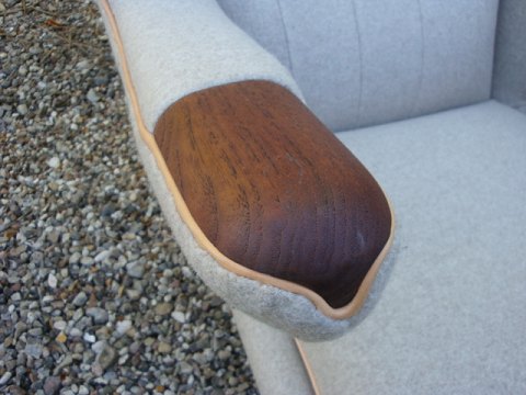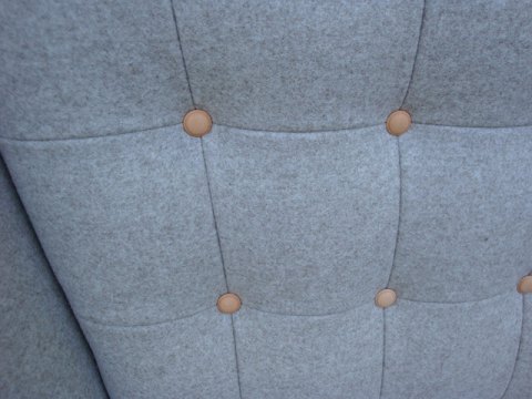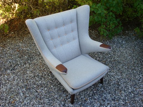 SoldPapa Bear chair, model AP19, Hans Jørgen Wegner. The chair is in Divana Wool, buttons in natural leather. Feet and legs of teak.