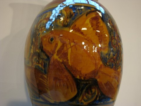 SoldFloor Vase by Herman Kähler with fish motifs in beautiful brownish shades.