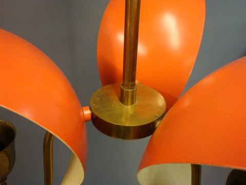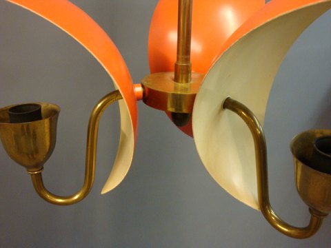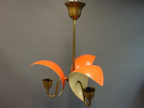 SoldCeiling lamp in brass with orange screens from the 1950s