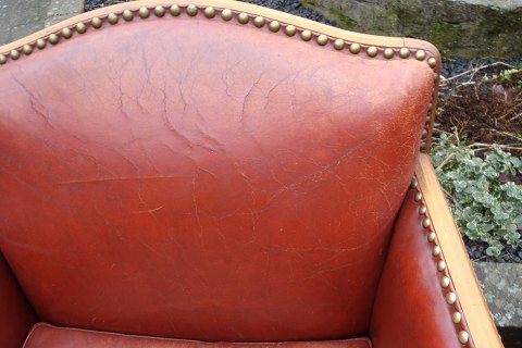 A pair of easy chairs from around the year 1930, in patinated red leather.
