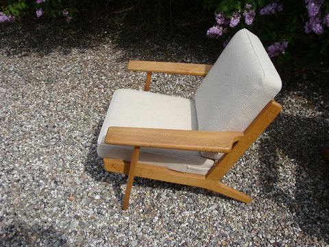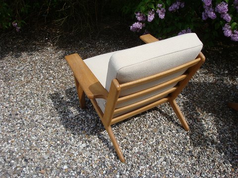 SoldA pair of Hans Wegner chairs Getama GE low model in oak 5000 m2 showroom