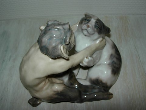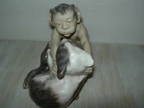 Rare Royal Copenhagen figur.Faun with Cat