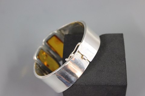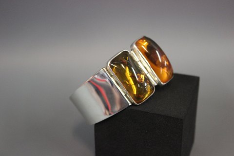Bangle in silver 925s with two large beautiful pieces of amber. Dia 6 cm.
