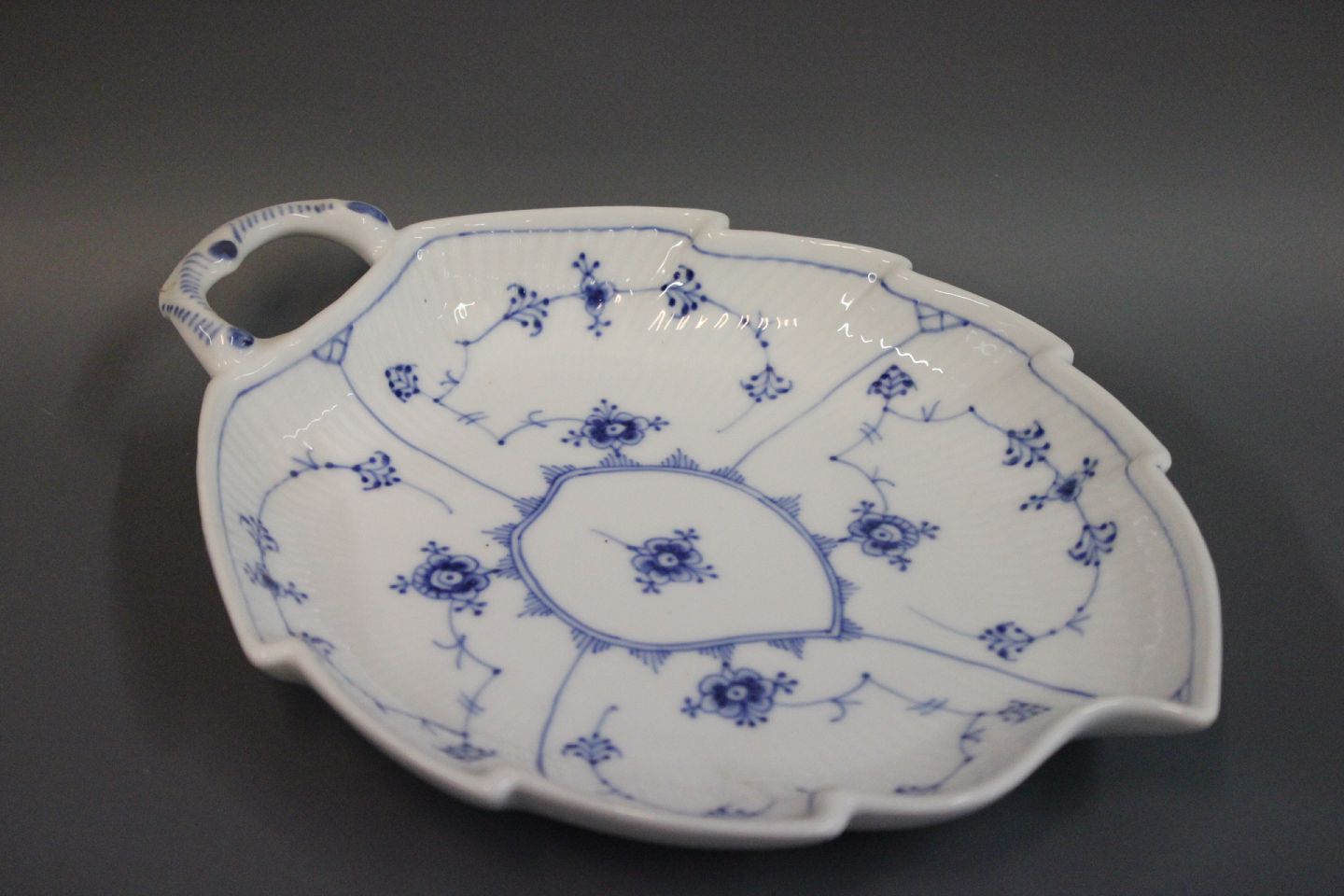 Royal Copenhagen leaf shaped blue fluted cake dish no. 1/145.