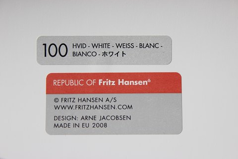 4 White seven chairs, model 3107, with armrests designed by Arne Jacobsen and manufactured by Fritz Hansen. The chairs were manufactured in 2008, but designed in the 1950s.