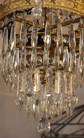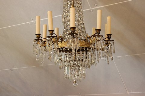 Crystal chandelier from France and the year 1880. The chandelier is in gilded bronze and has been restored.