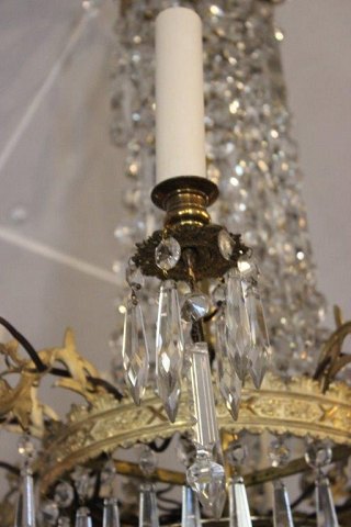 Crystal chandelier from France and the year 1880. the chandelier is in gilded bronze and has been restored.