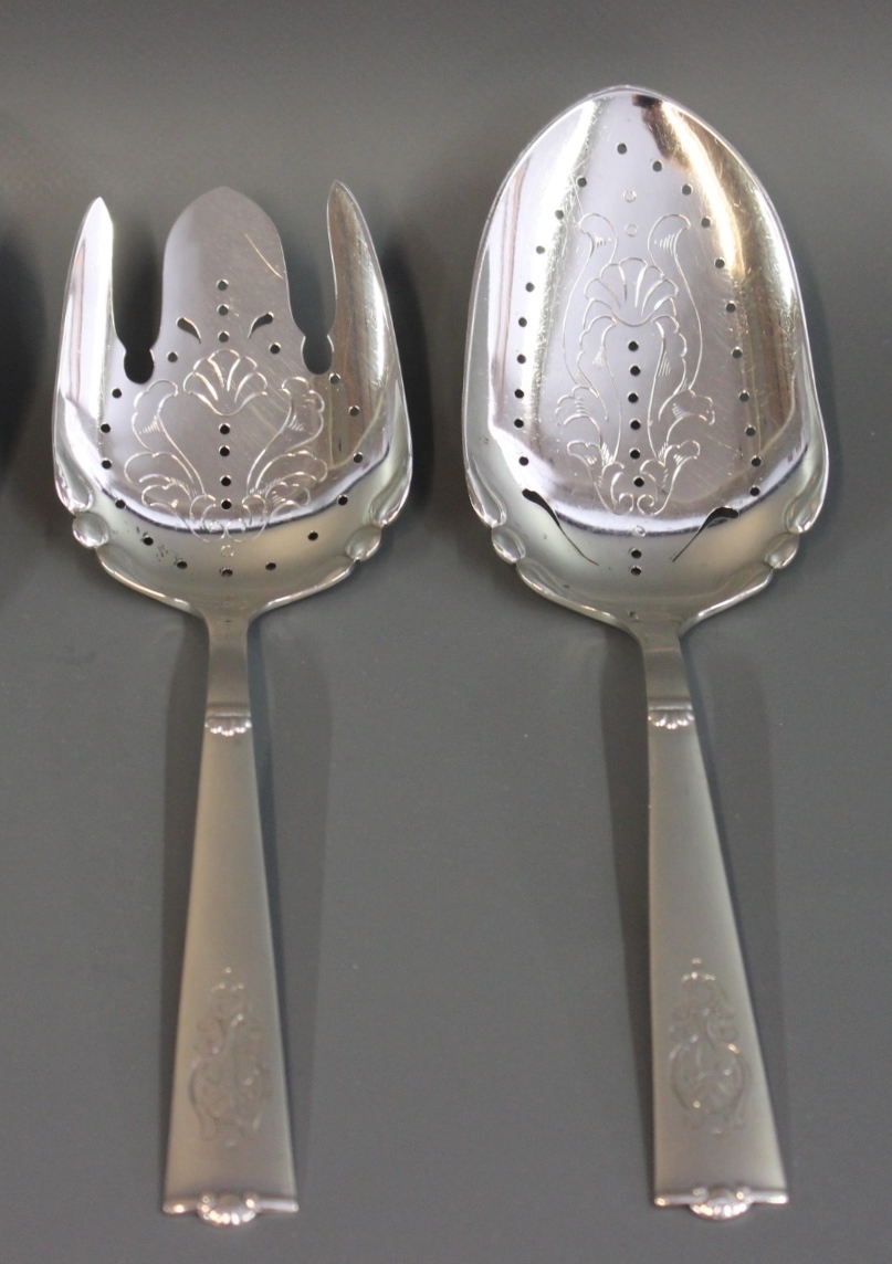 Hallmarked silver fish cutlery with openworked with holes of the Atlantic series 3200 with chasings from Fredericia silver-industry.