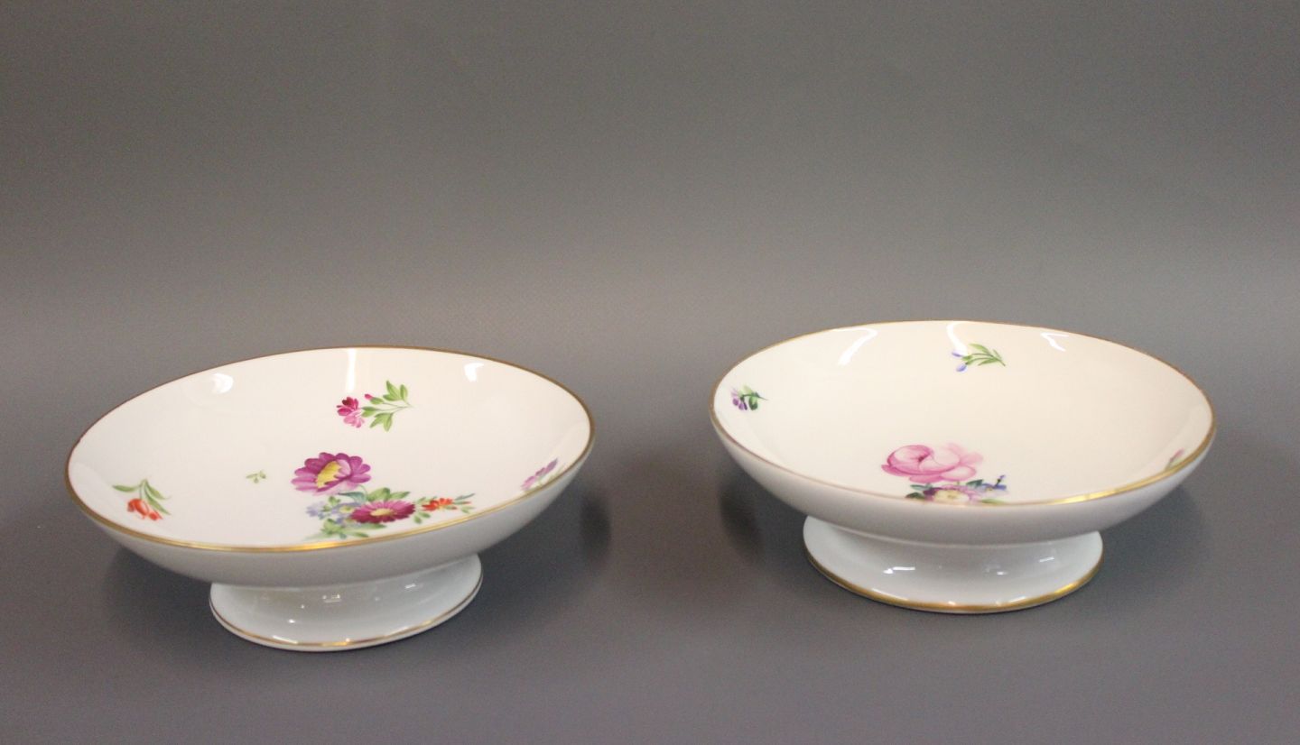 Kongelig saksisk blomst, To små opsatser. Opsatsen med en lyserød rose er lavet mellem 1870-1890, mens den anden er fra 1936.