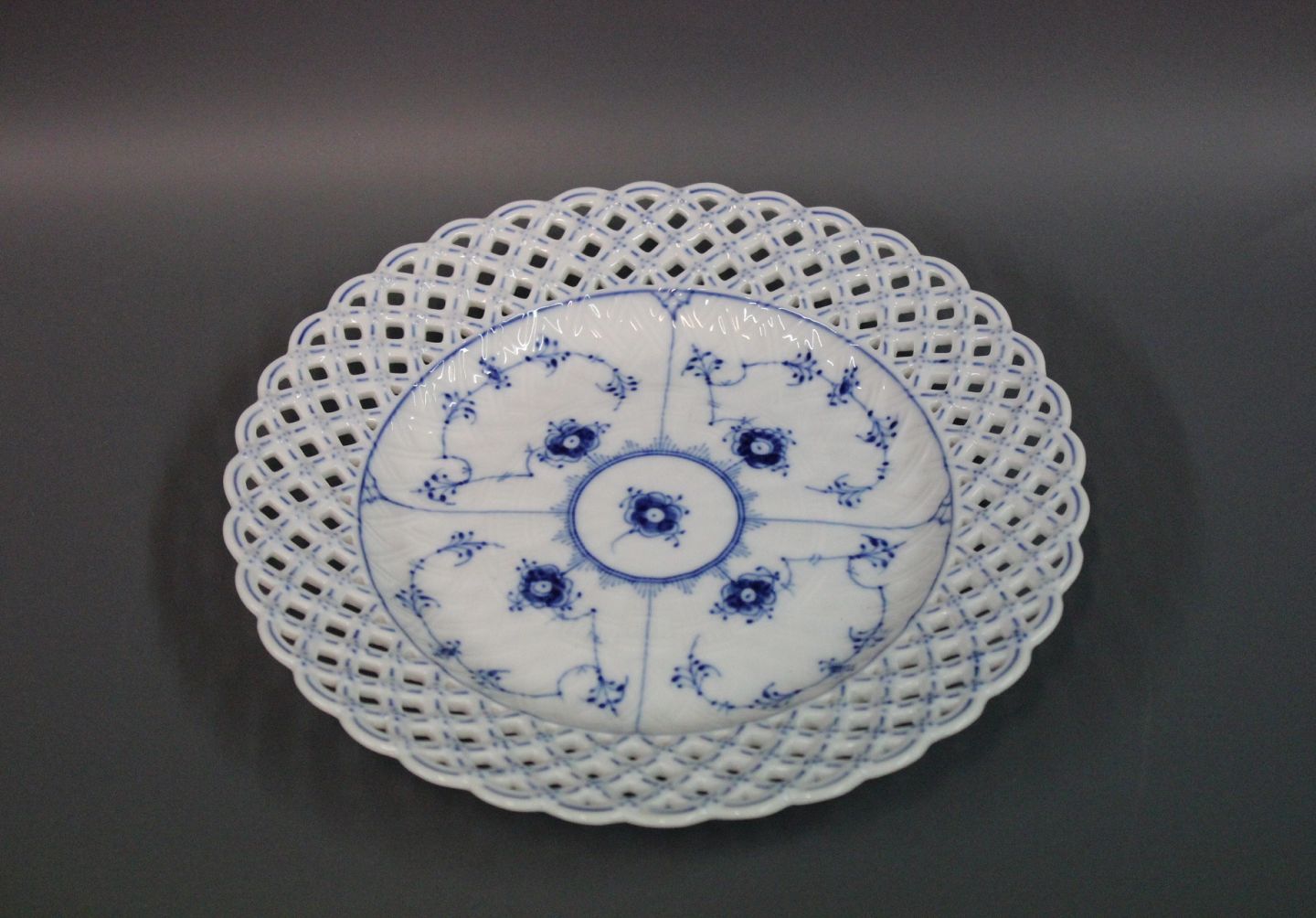 Royal Copenhagen blue fluted lace plate with cutaway ornamental edging, no. 1098 and made between 1985 and 1991.
