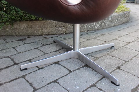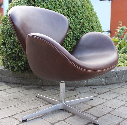 SoldA pair of swanchairs, model FH 3320, in dark Brown patinated leahter. The chairs were designed by Arne Jacobsen in 1958 and were manufactured by Fritz Hansen 1999.