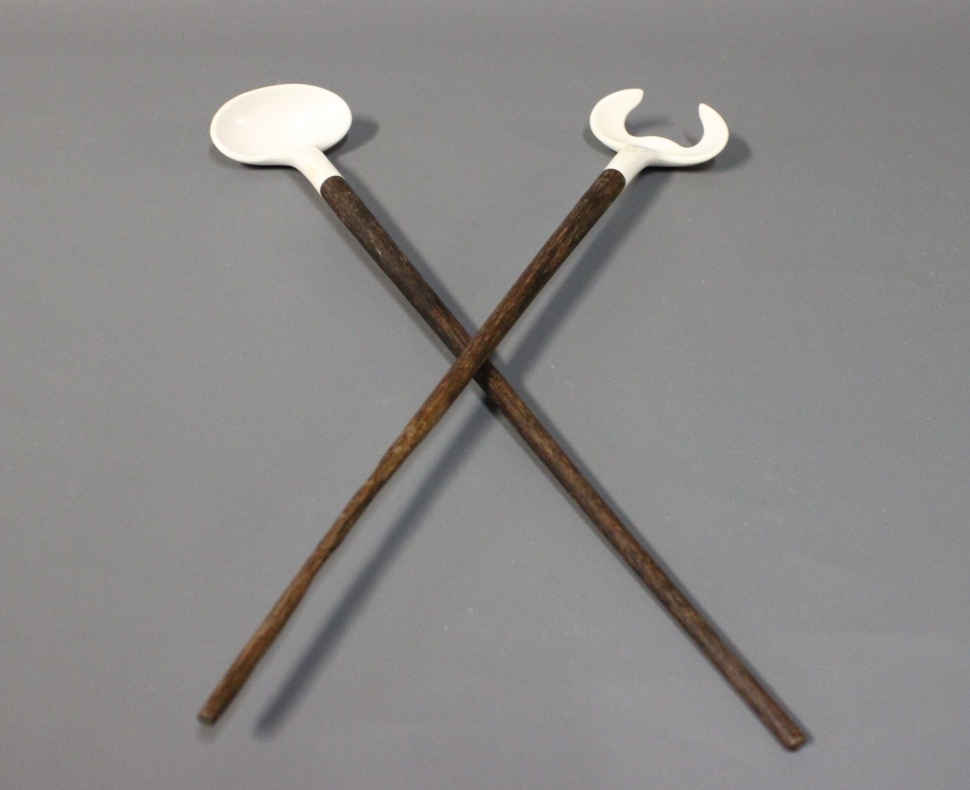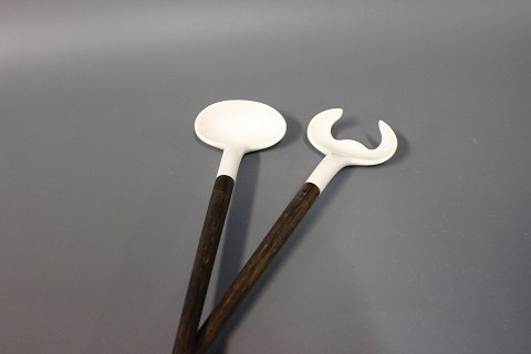 SoldSalad servers in rosewood and porcelain. The set is of Danish design from the 1960s.