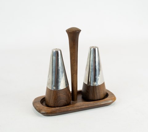 Salatsæt i palisander og stål. Dansk design fra 1960erne.