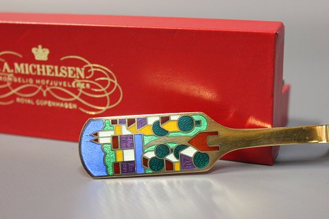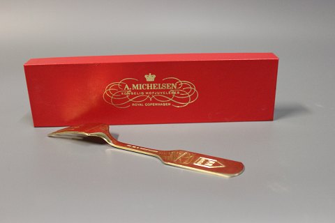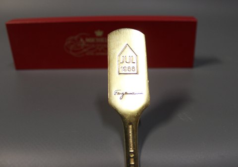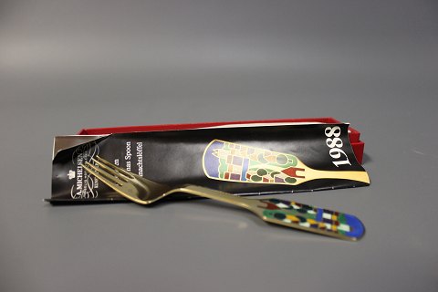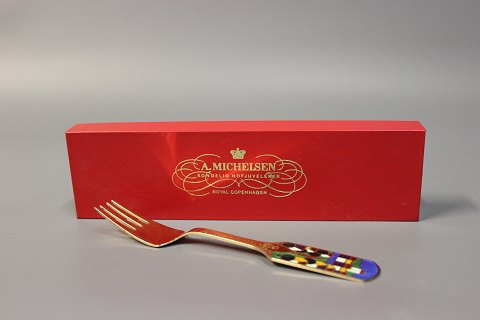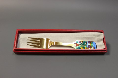 SoldChristmas fork by A. Michelsen from 1988, gilded sterling silver 925 s. The fork is with the motif "The City" and designed by Knud Erik Færgemann.