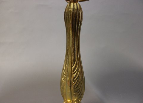 Bordlampe i messing med flot udsmykket fod og hvid glas kuppel. Lampen er i Jugendstil fra 1920erne.