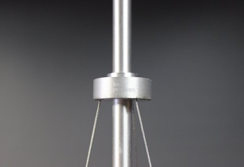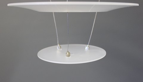SoldEnigma 425 pendant designed by Shoichi Uchiyama and manufactured by Louis Poulsen. The pendant is in brushed aluminum and matted acrylic.