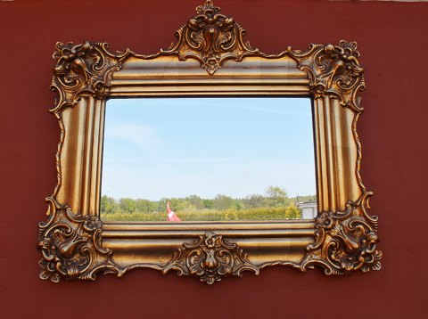 SoldBeautifully decorated mirror with frame of original gold leaf from Denmark in 1820.