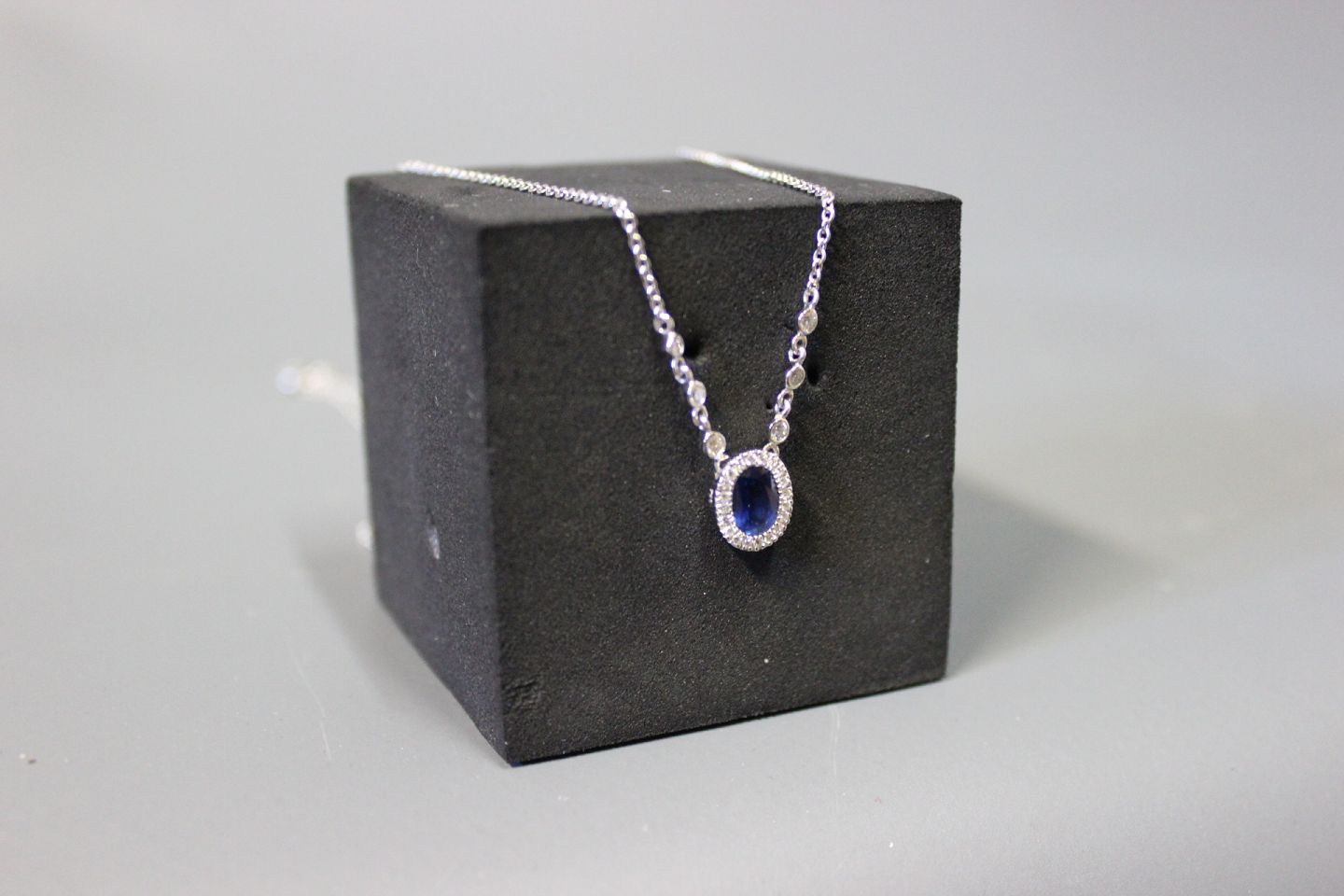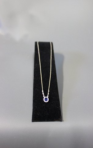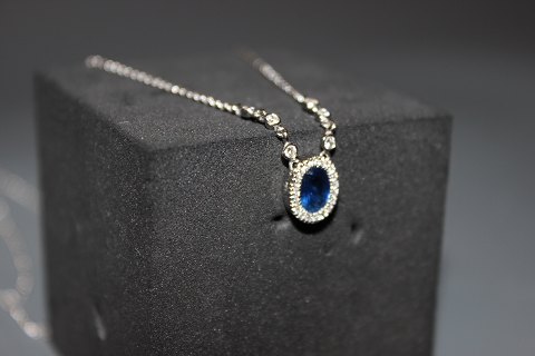 Sold18 carat White gold neclace with 21 0,01 d., 6 0,03 d. and a saphire.