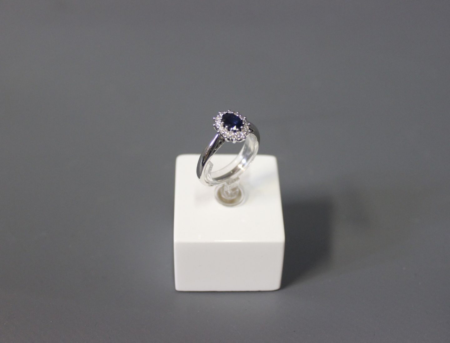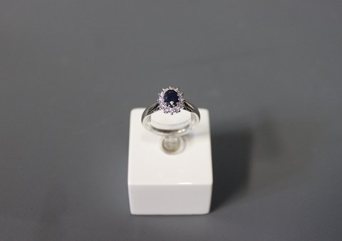 Ring in 14 ct. White gold with sapphires and 12 small diamonds by Scrouples.