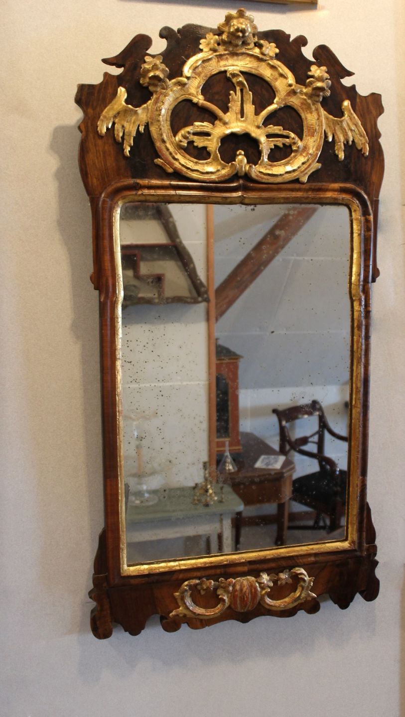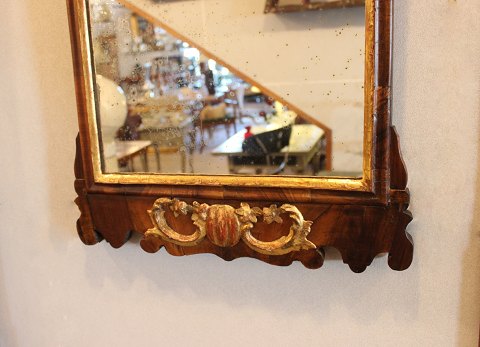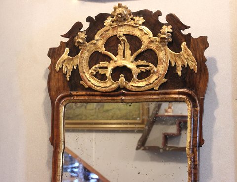 Mirror in Rococo style and walnut. The mirror is from around the 1740s, Denmark and is in it's original condition.
