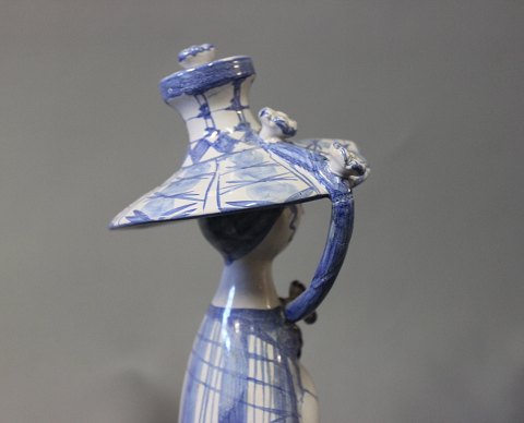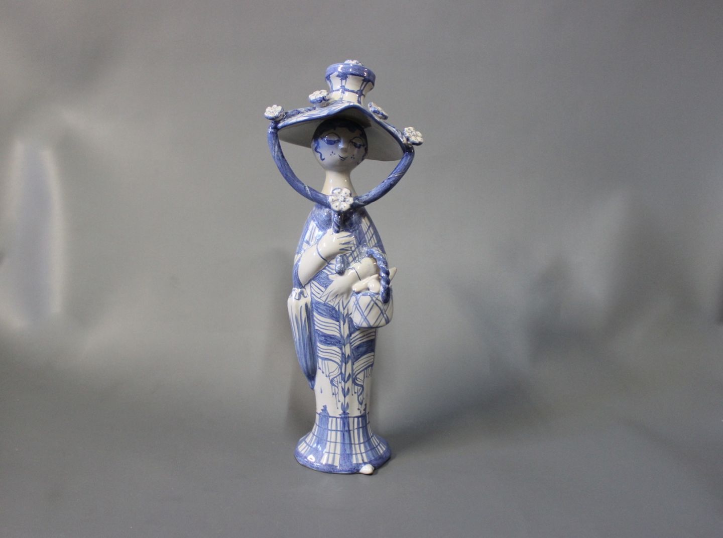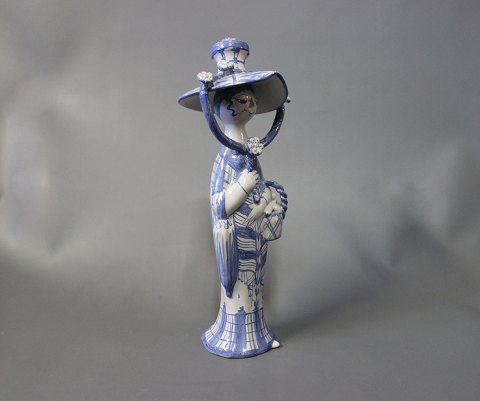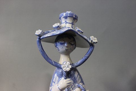SoldCeramic figurine "Fall", M22, from the series "The seasons" designed by Bjørn Wiinblad. This figurine was amde in 1975 and is decorated in blue and White colors.