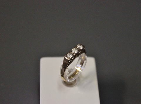 14 kt. guld ring med 3 zirkoner, stemplet EGM.