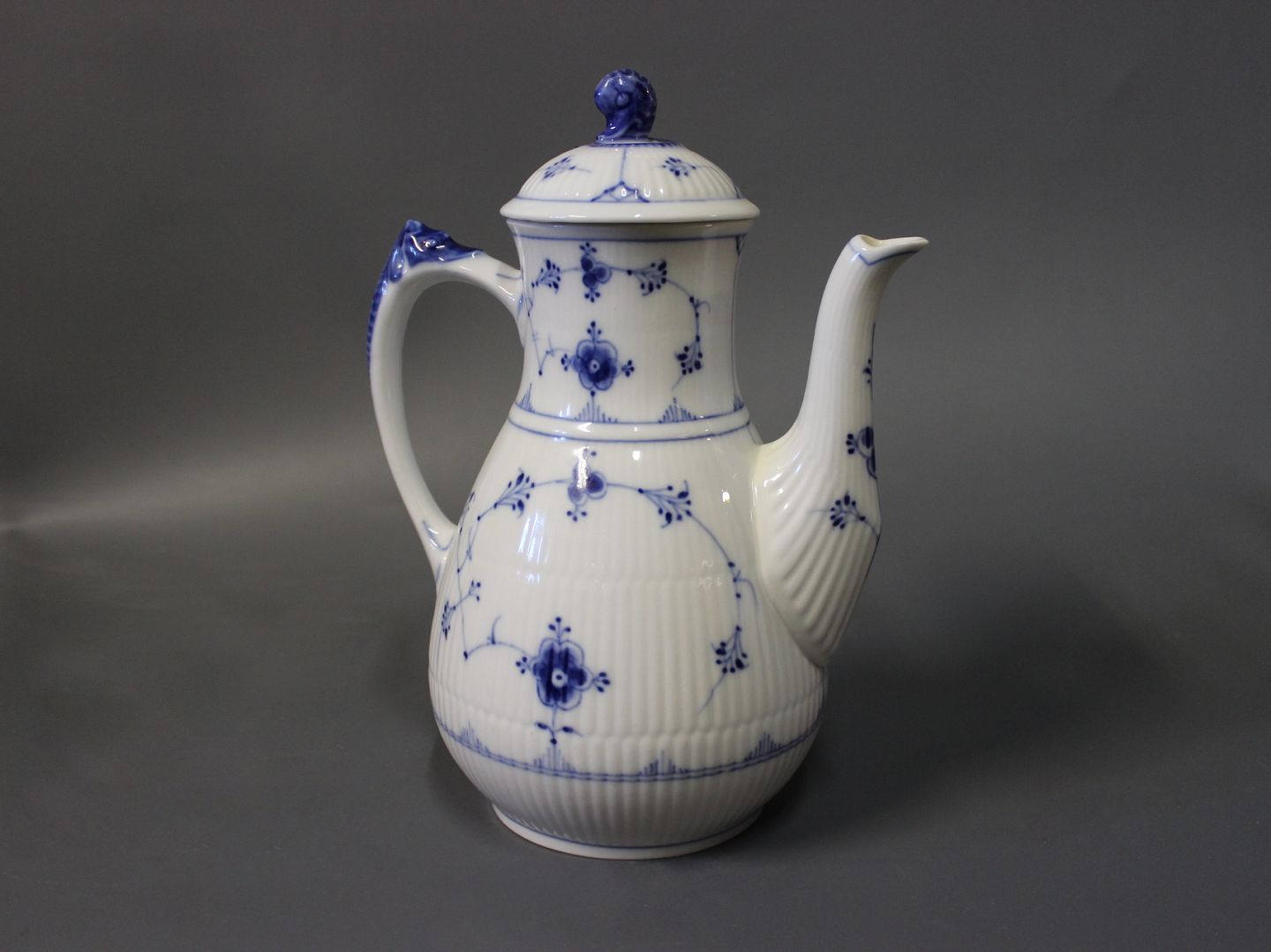 B&G musselmalet/blåmalet riflet kaffekande, stemplet nr.: 18.