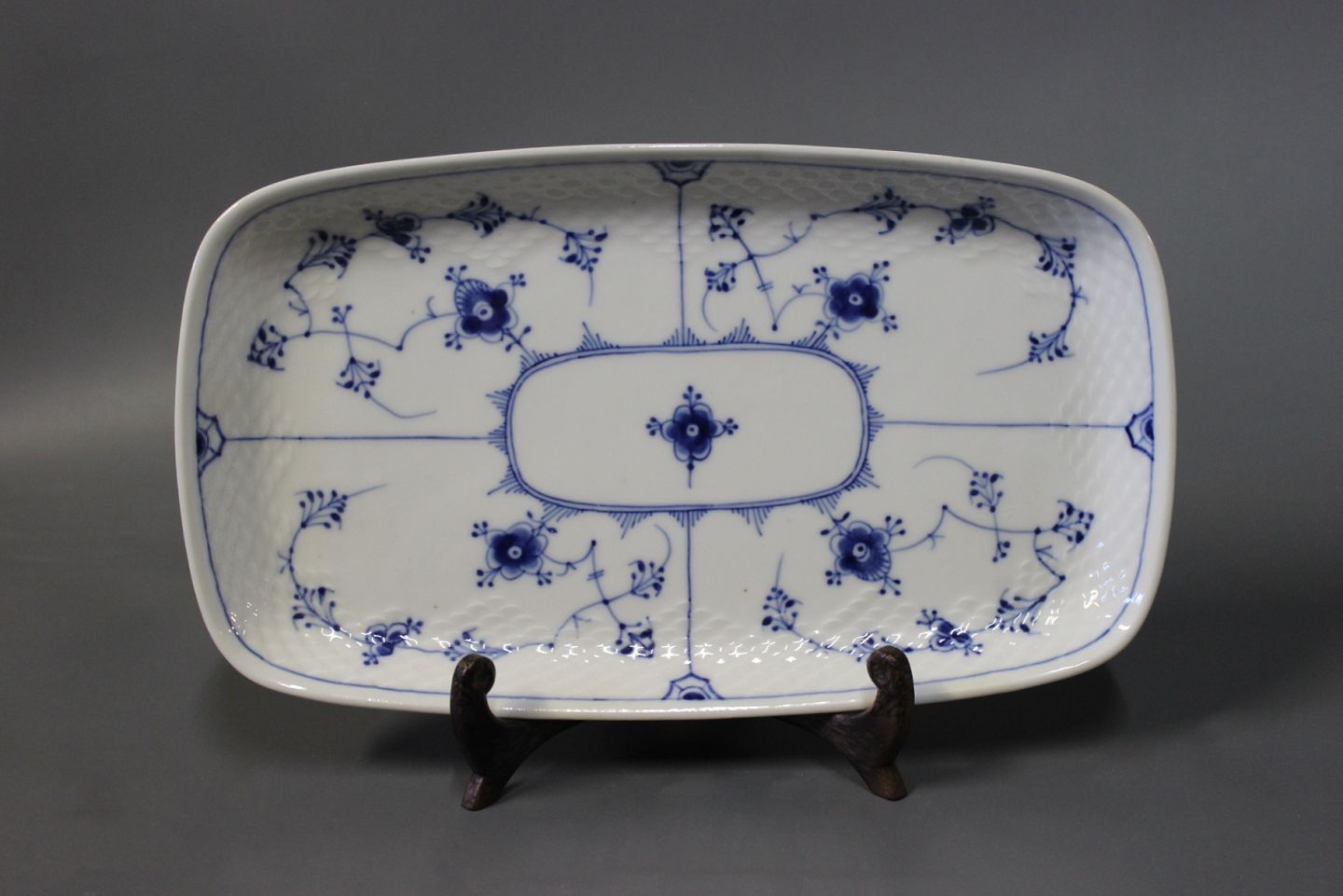 SoldB&G blue fluted/-painted rectangular dish, stamped #11.
