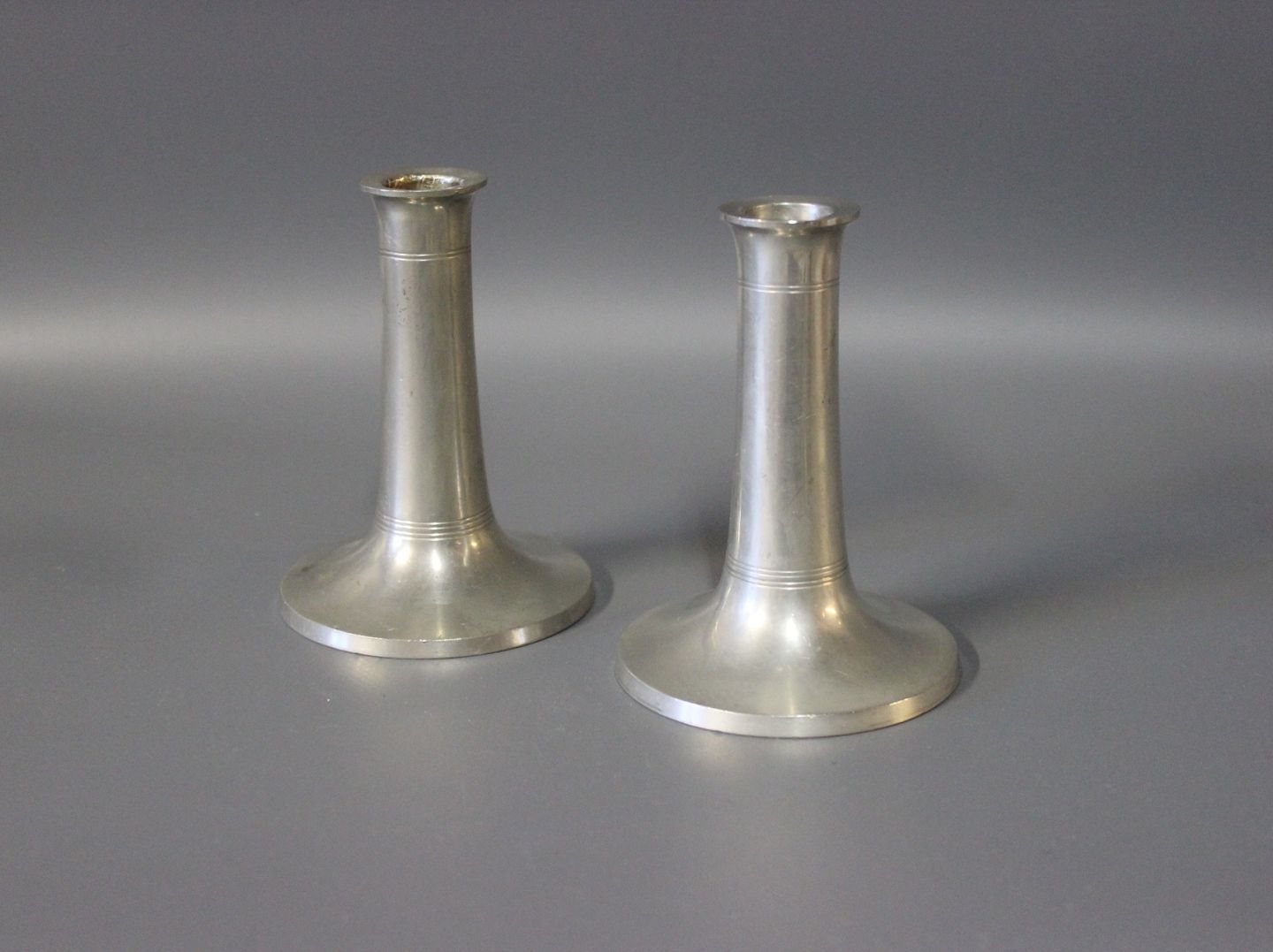 SoldA pair of tin candlesticks by Just Andersen DK.
