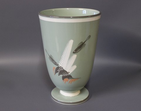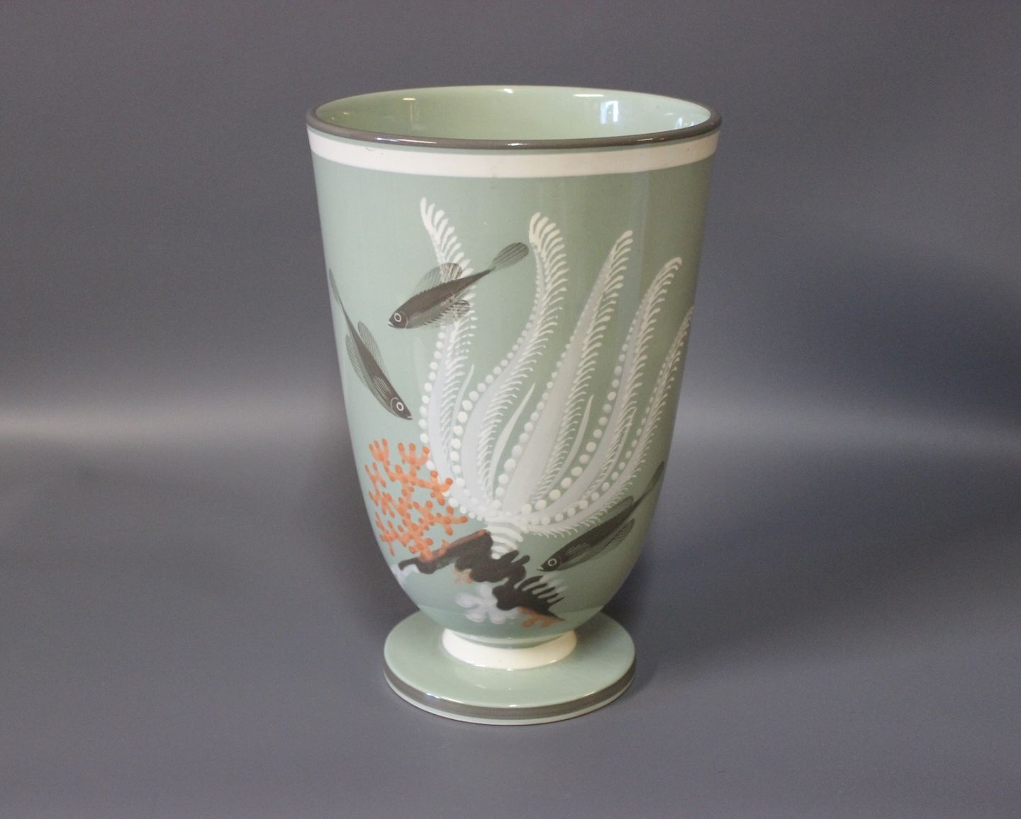 SoldAluminia vase, decorationsno.: 1906 and form number. 1540, with decorations in the shape of fish and underwater flowers. The Vase is from the Levant series designed by Nils Thorsson in 1938-1940.