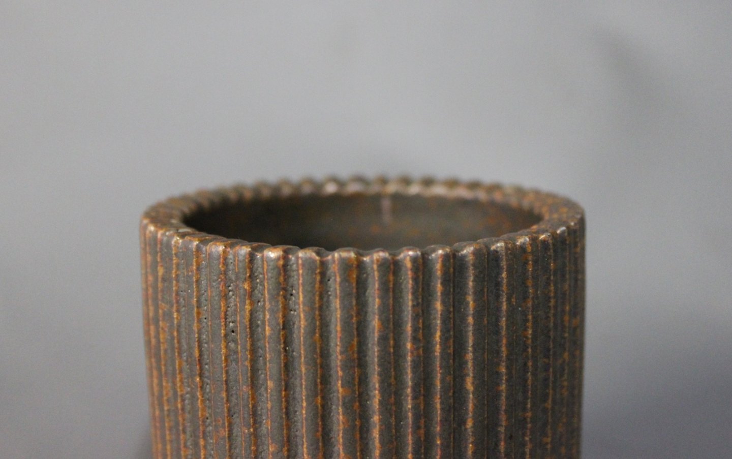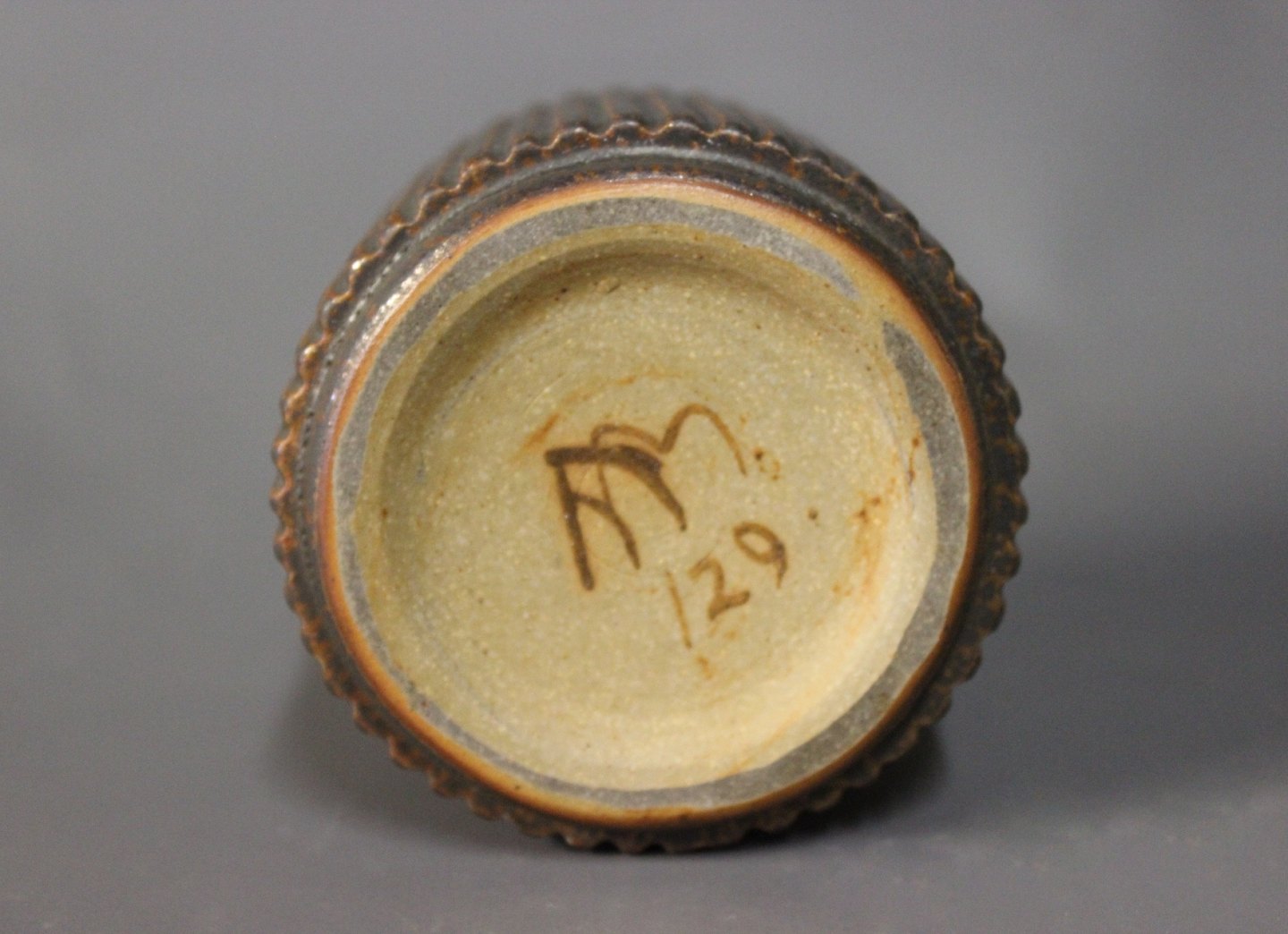 SolgtLille keramik vase/krukke mørke brune farver af Arne Bang, nr.: 129.