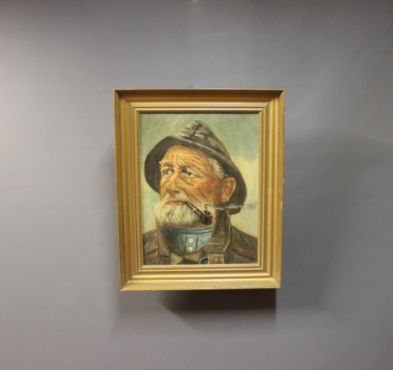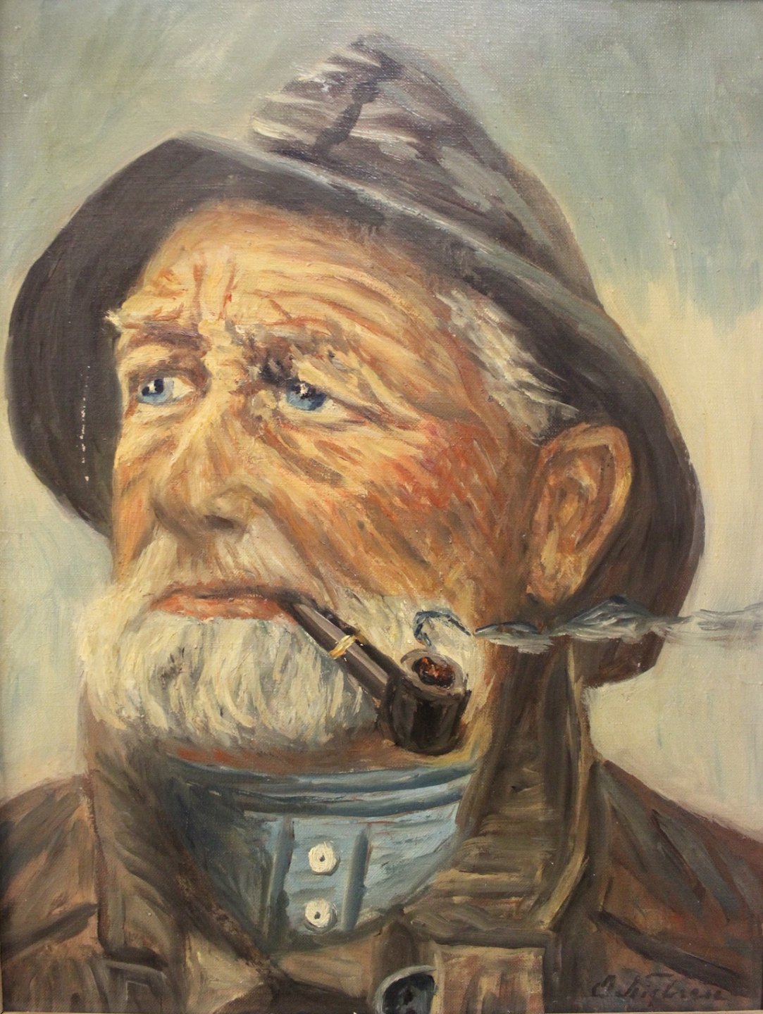 SoldOil painting on canvas, "The Fisherman" unknown signature.