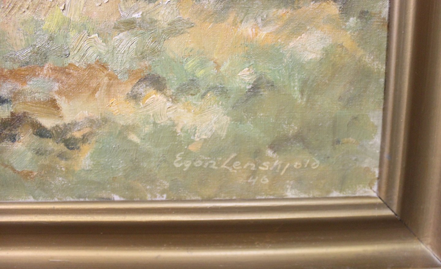 SoldOil painting on canvas of landscape signed Egon Lenskjold 1946.