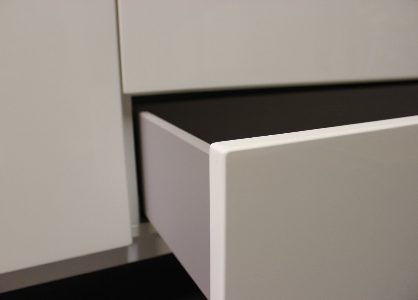 Sideboard of the model Arctic media three, designed by Rolf Svenssons for Voice. The sidebord is of high gloss lacquer.