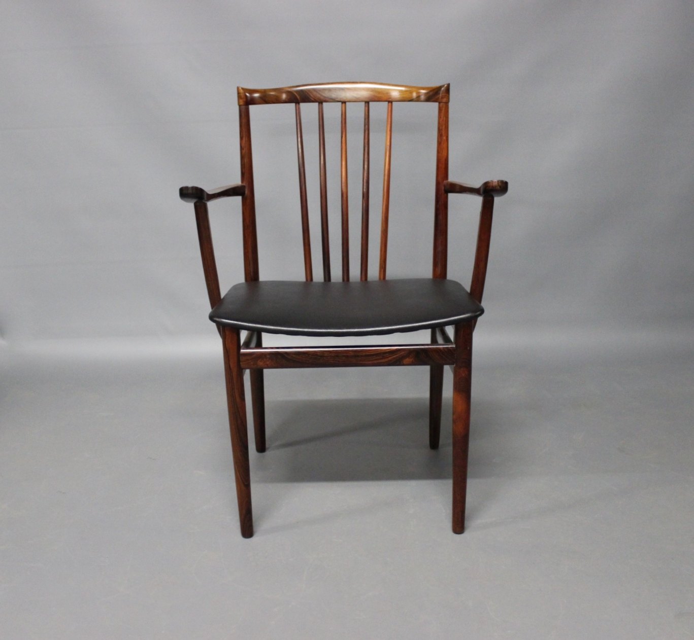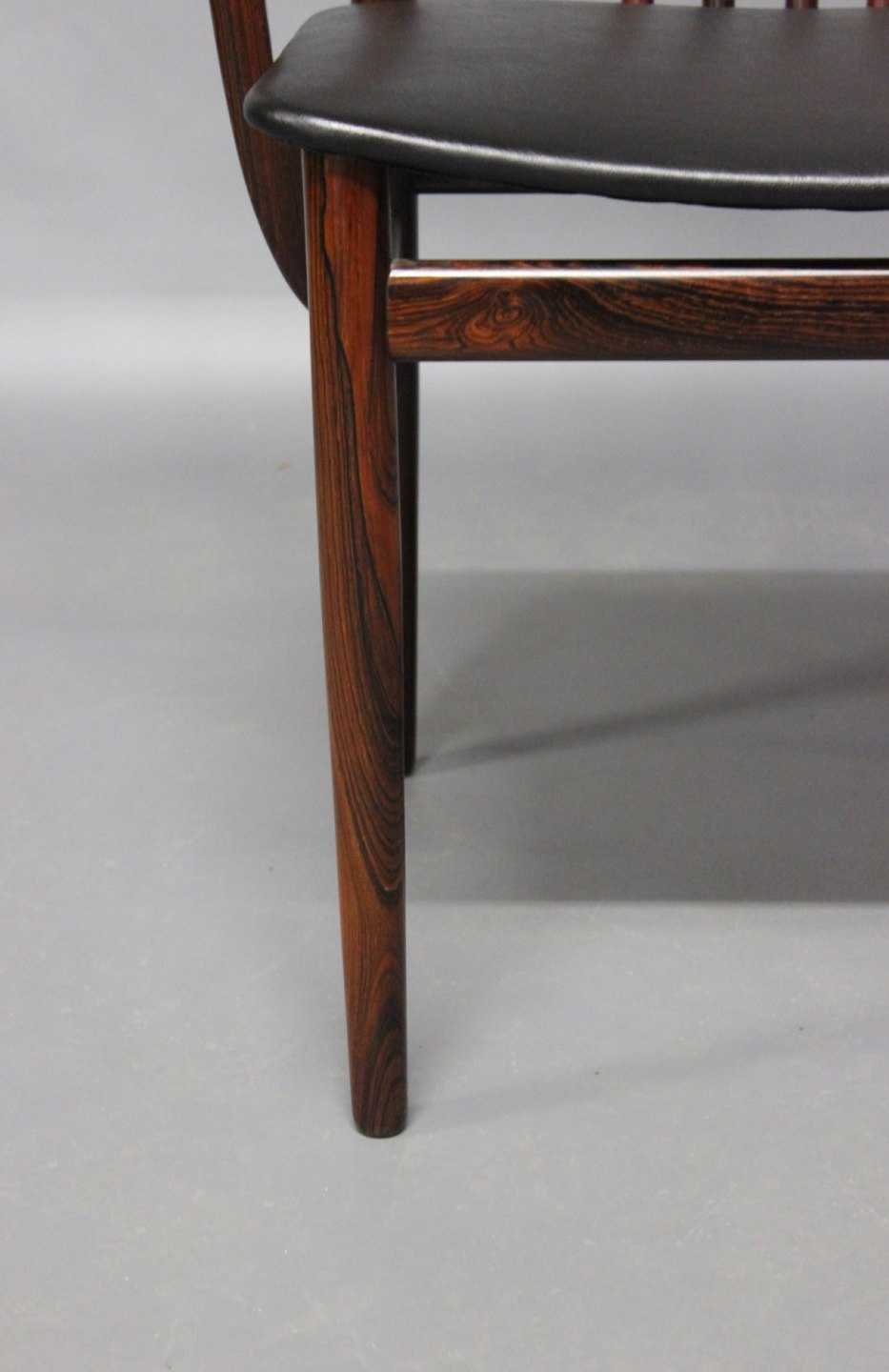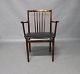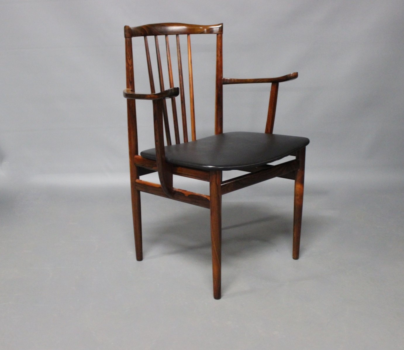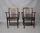 SoldA pair of armchairs in rosewood and seat of Classic Black leather designed by Henning Sørensen in 1968.