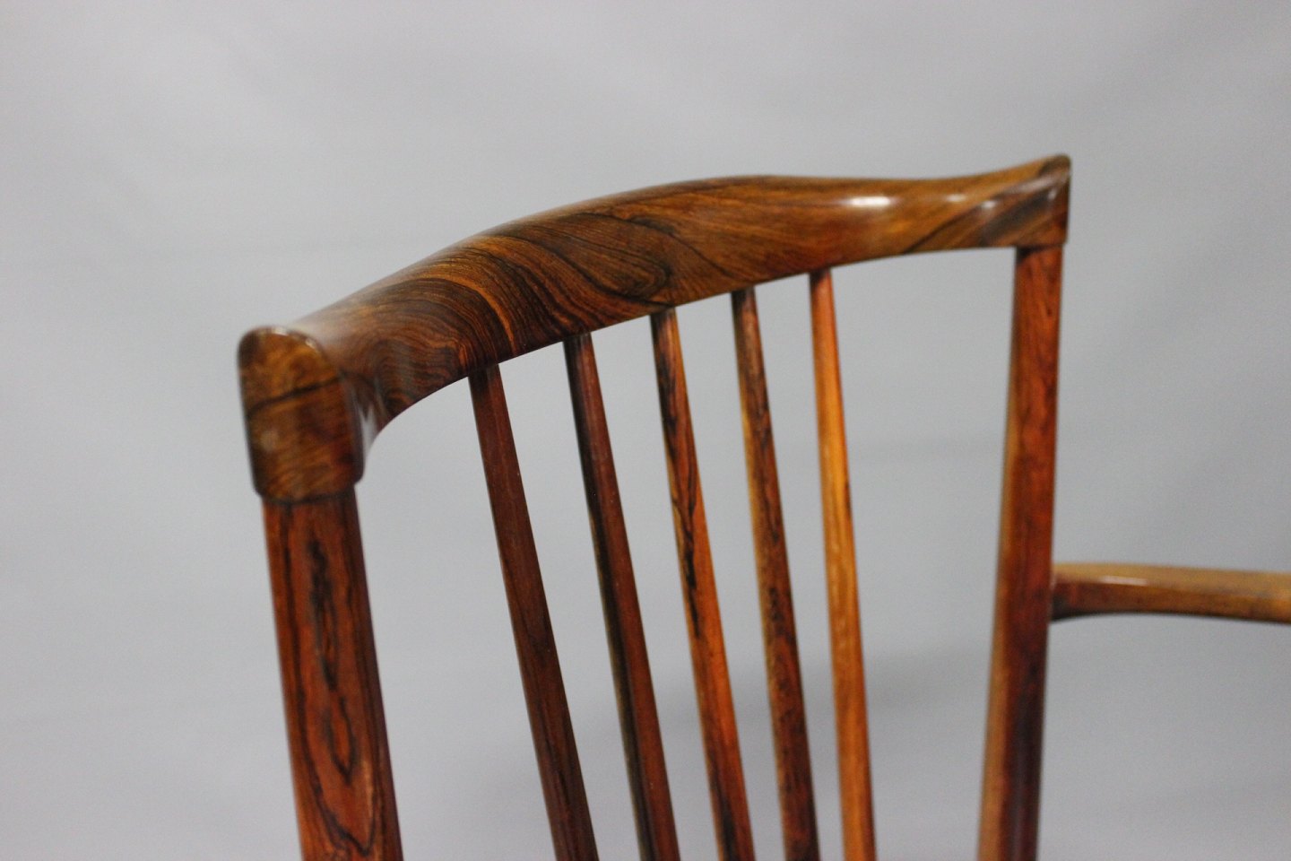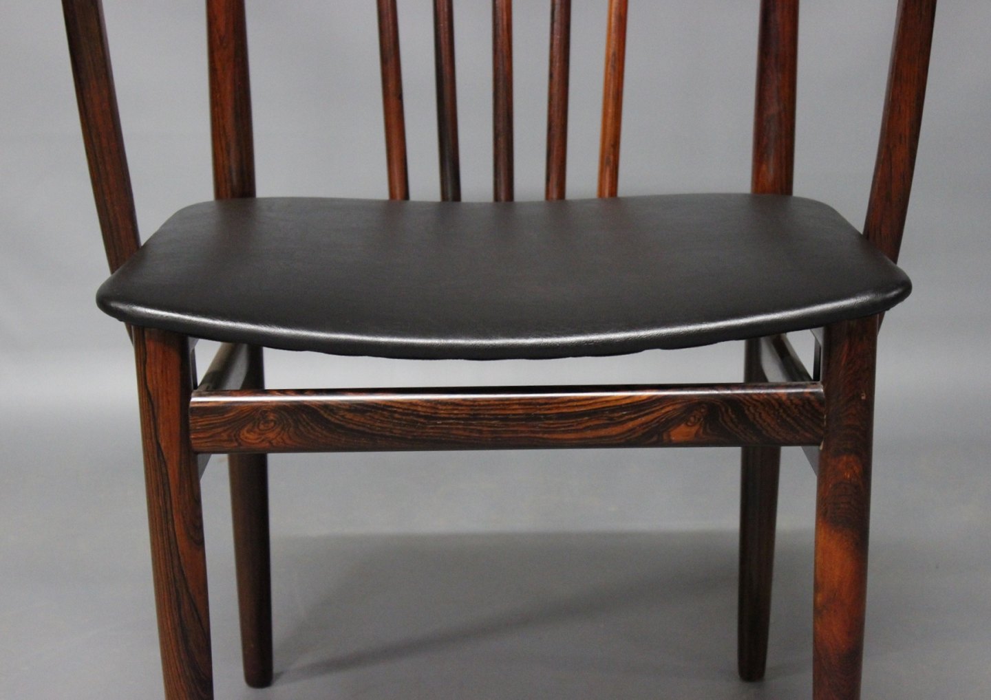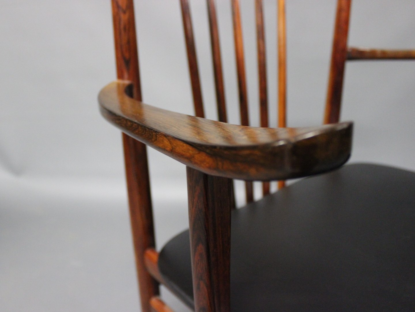 SoldA pair of armchairs in rosewood and seat of Classic Black leather designed by Henning Sørensen in 1968.