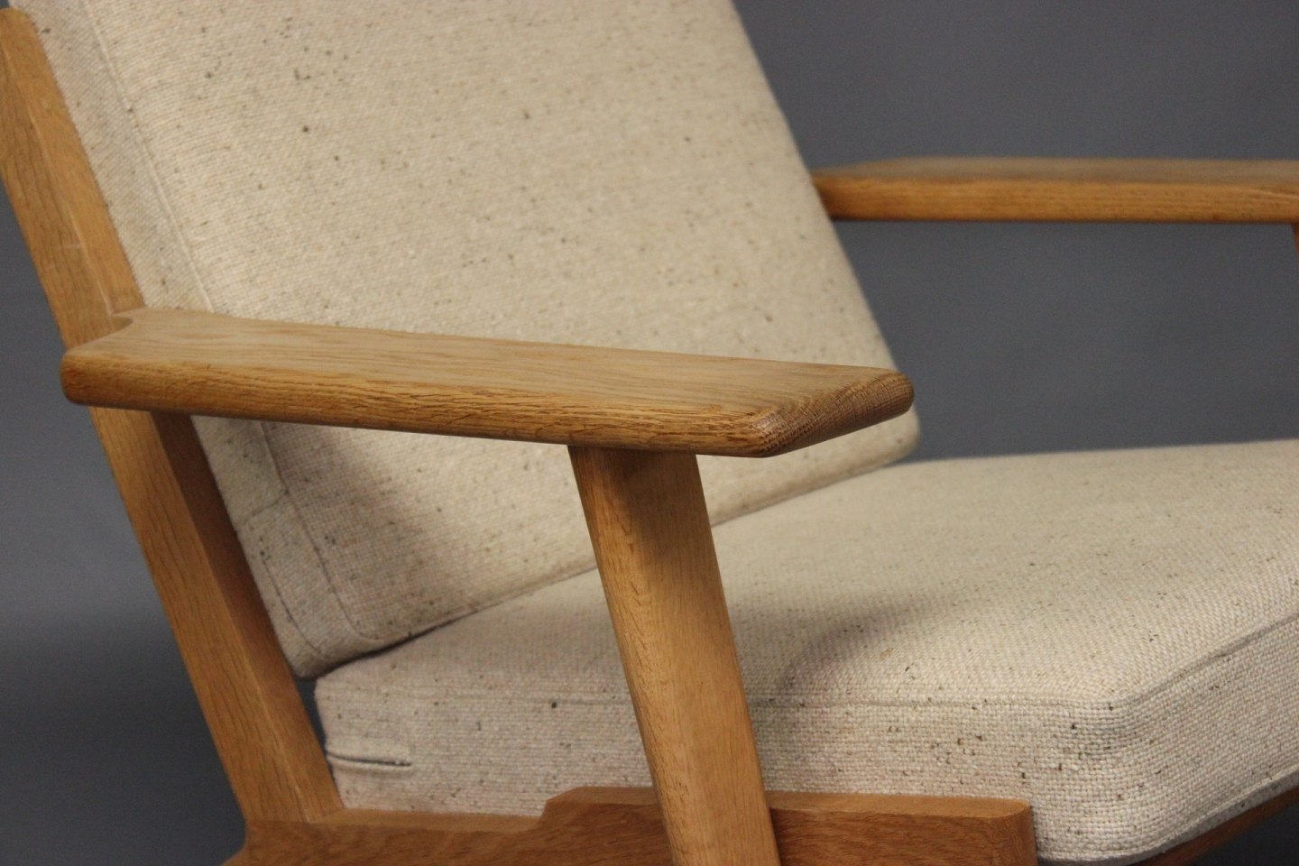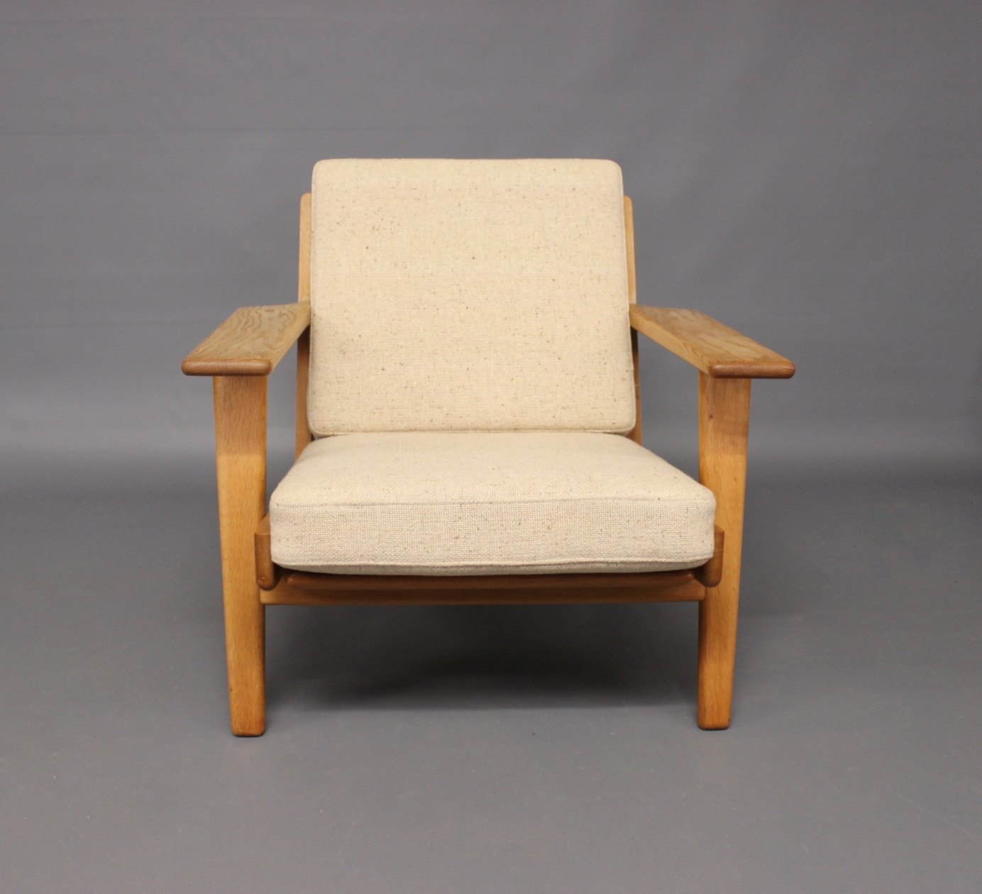 Armchair, model GE290, designed by Hans J. Wegner in the 1950s and manufactured by GETAMA in the 1960s. The chair is of Oak and with cushions upholstered in light Hallingdal wool.