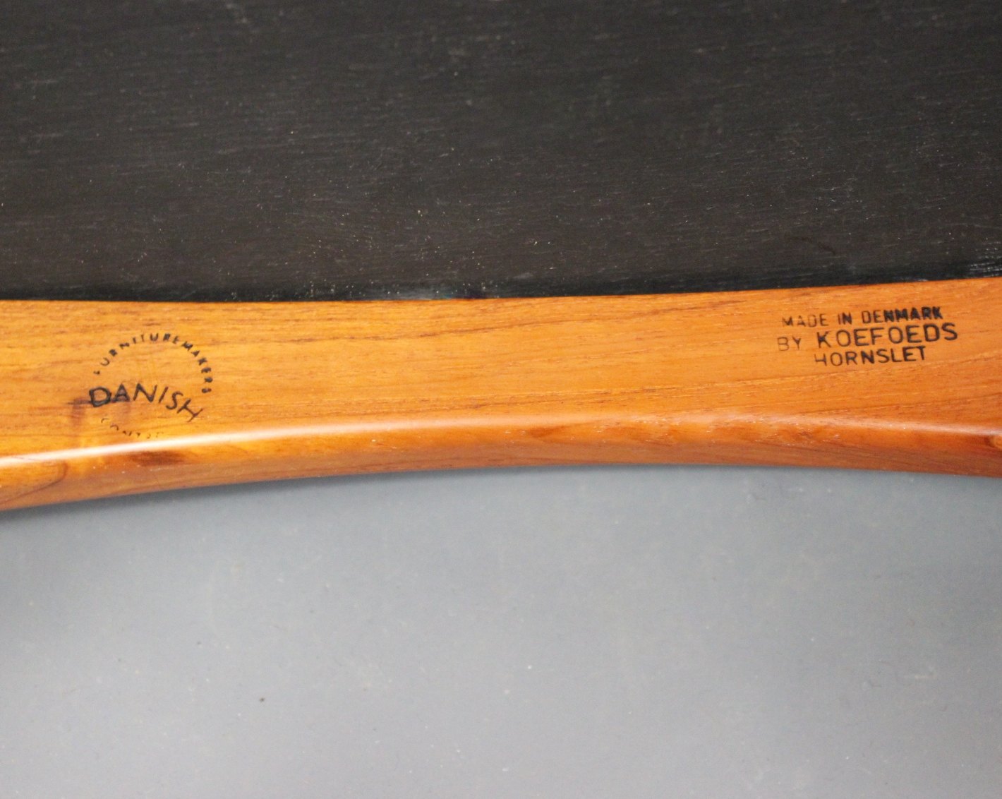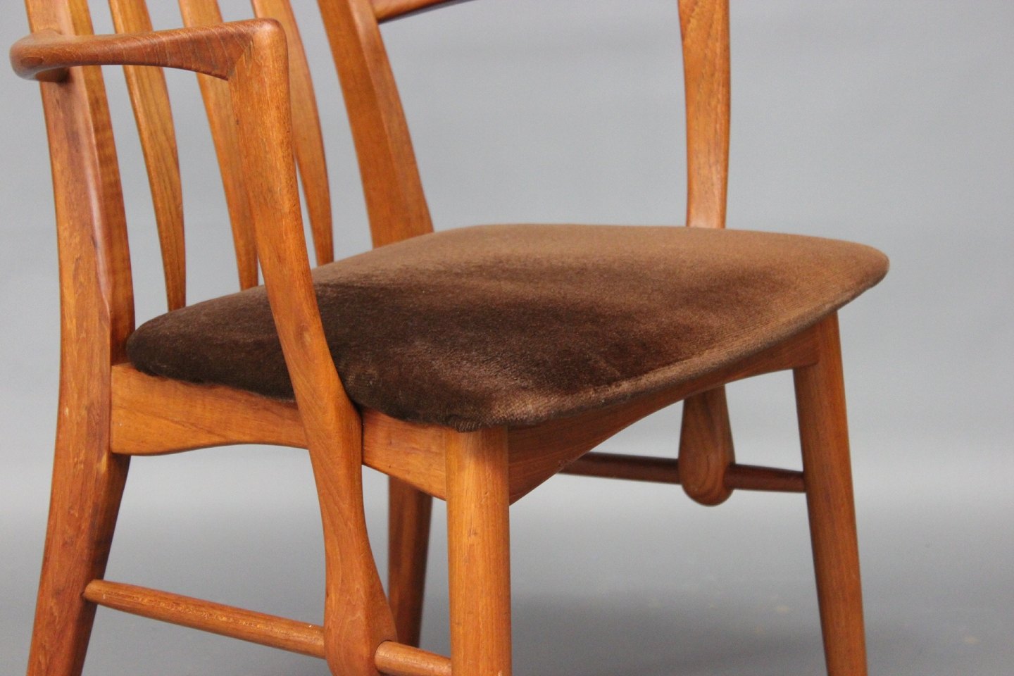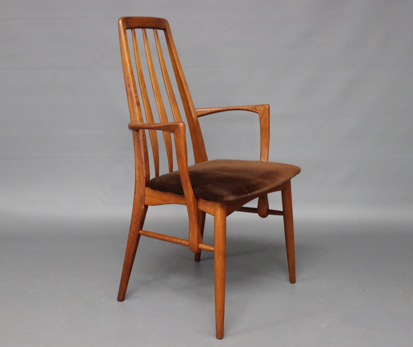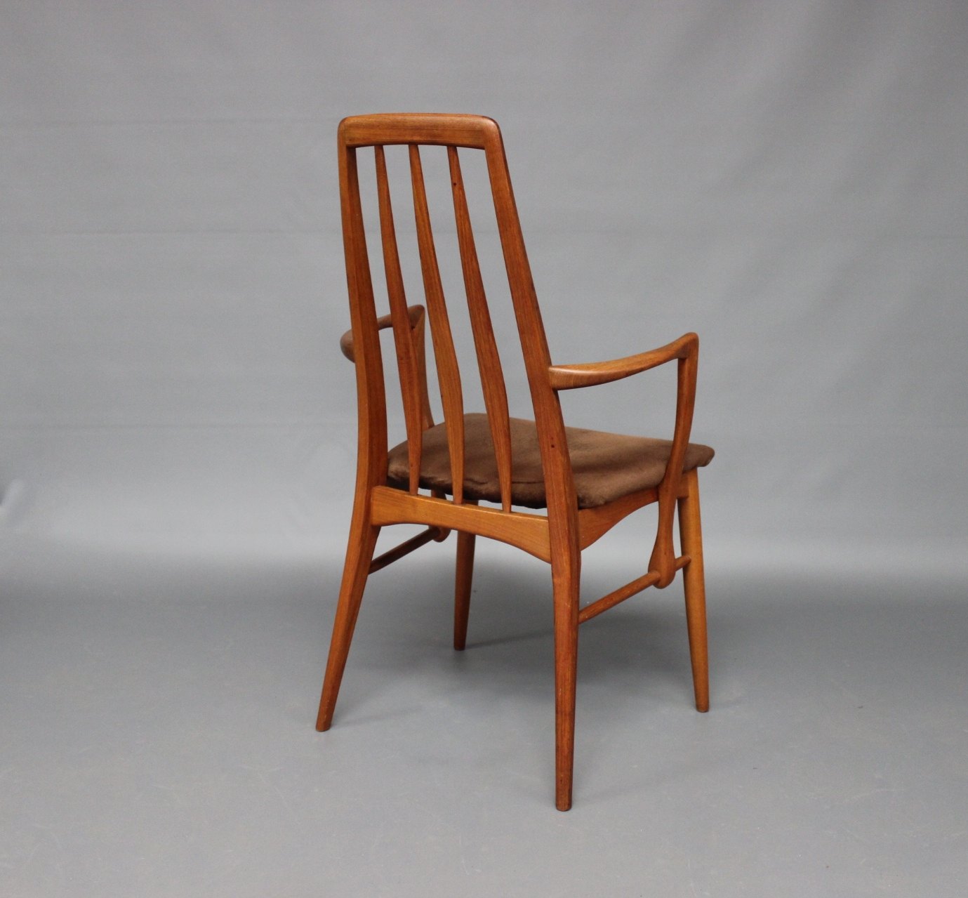 Get a touch of retro elegance with this pair of "Eva" armchairs, designed by Niels Koefoed in 1964 and handcrafted by Koefoeds Hornslet in the late 1960s. These iconic chairs are carved from teak wood, providing a warm and natural atmosphere to any room.