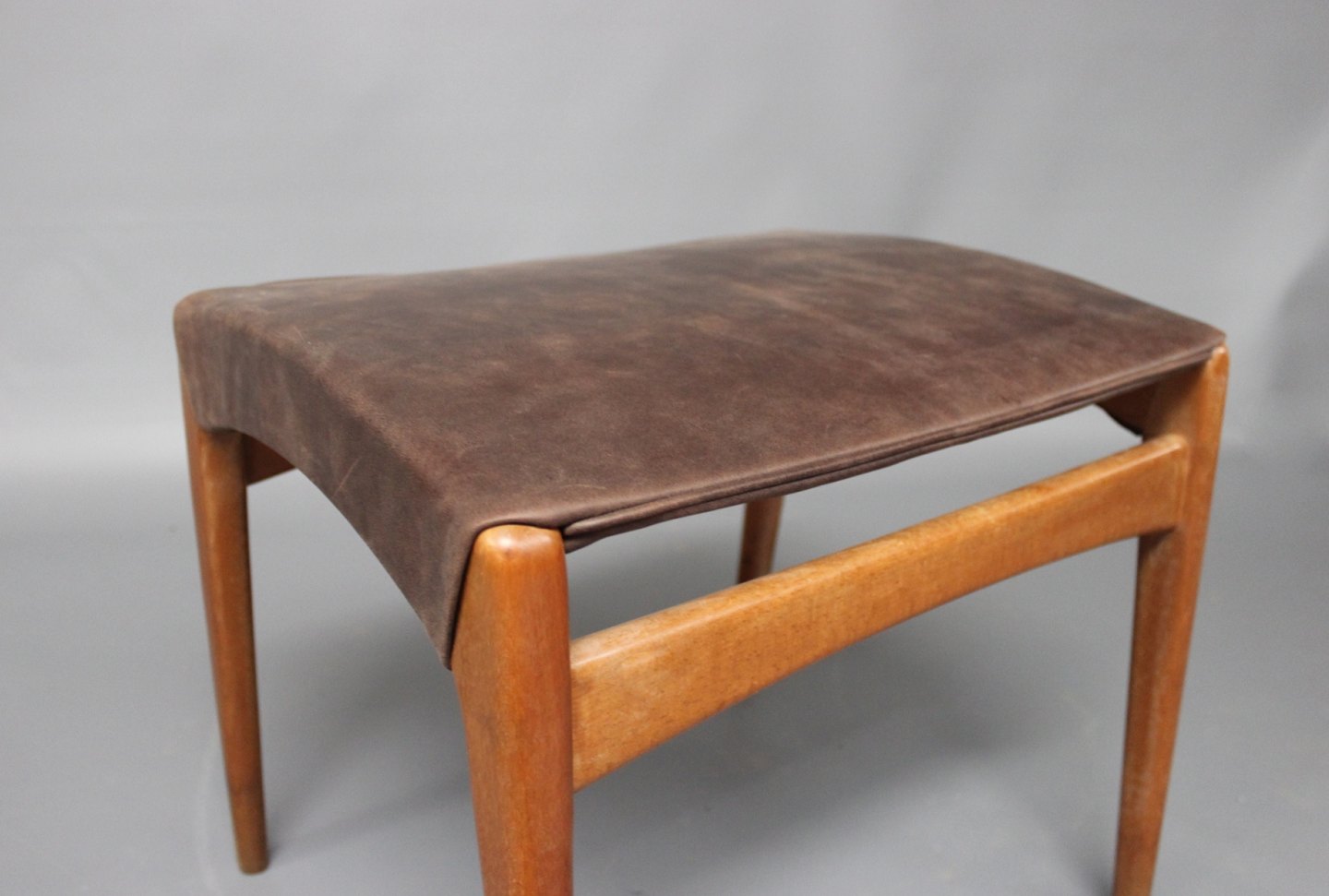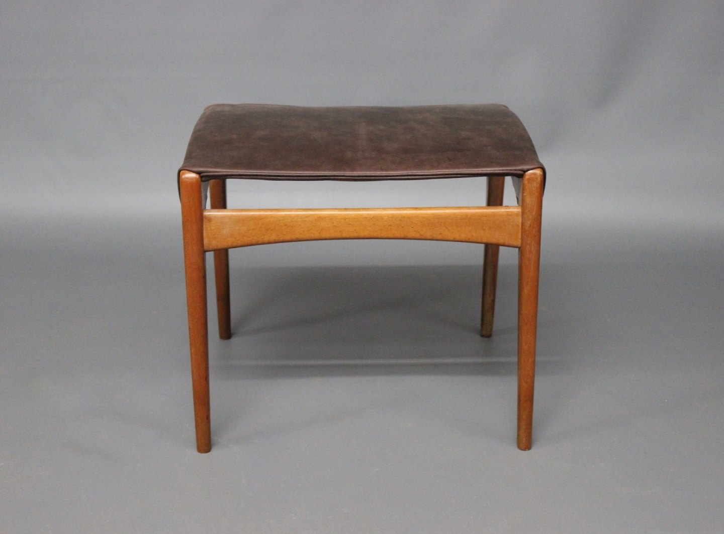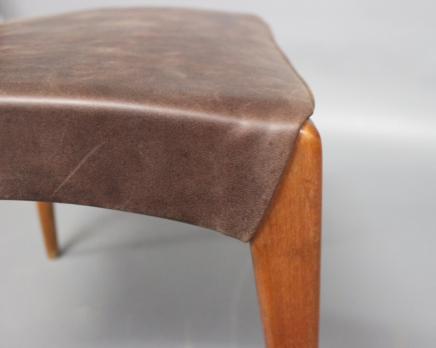 SoldStool in polished wood and dark brown patinated leather of Danish design from the 1960s. The stool is stamped "Danish Furnituremakers Control."