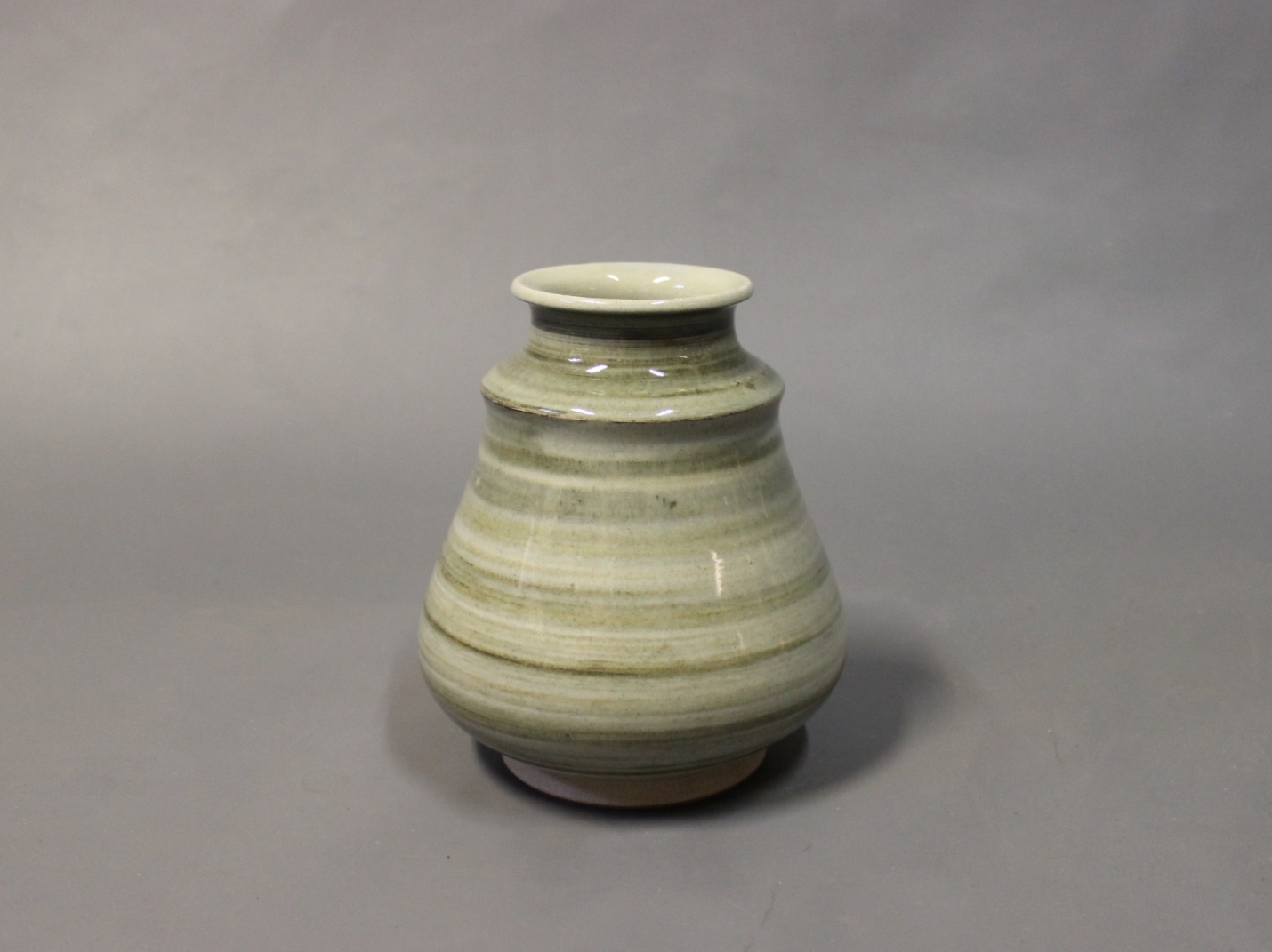 Ceramic vase with a green glaze signed Claus Ivarsson by Höganäs from the 1960s.