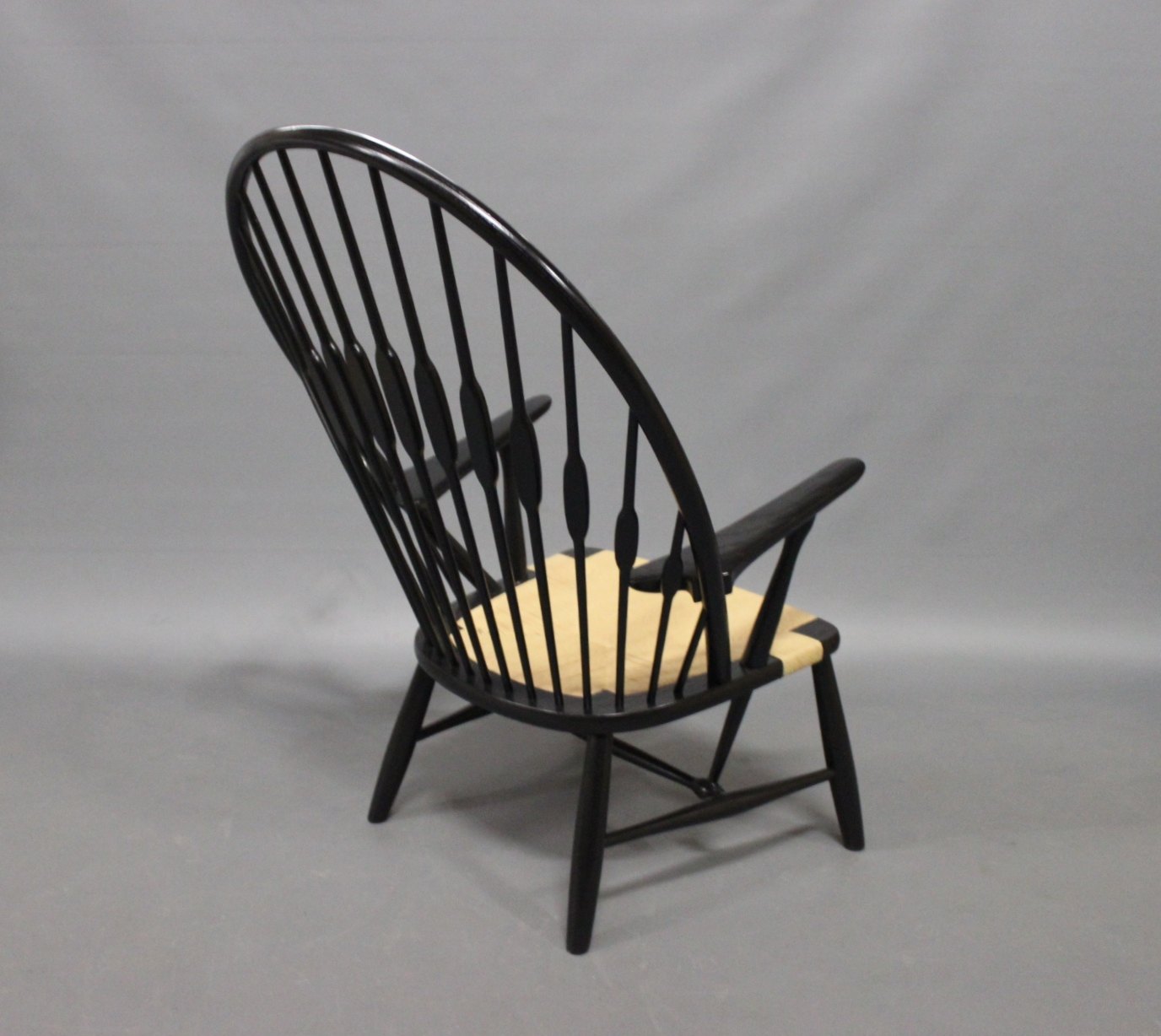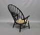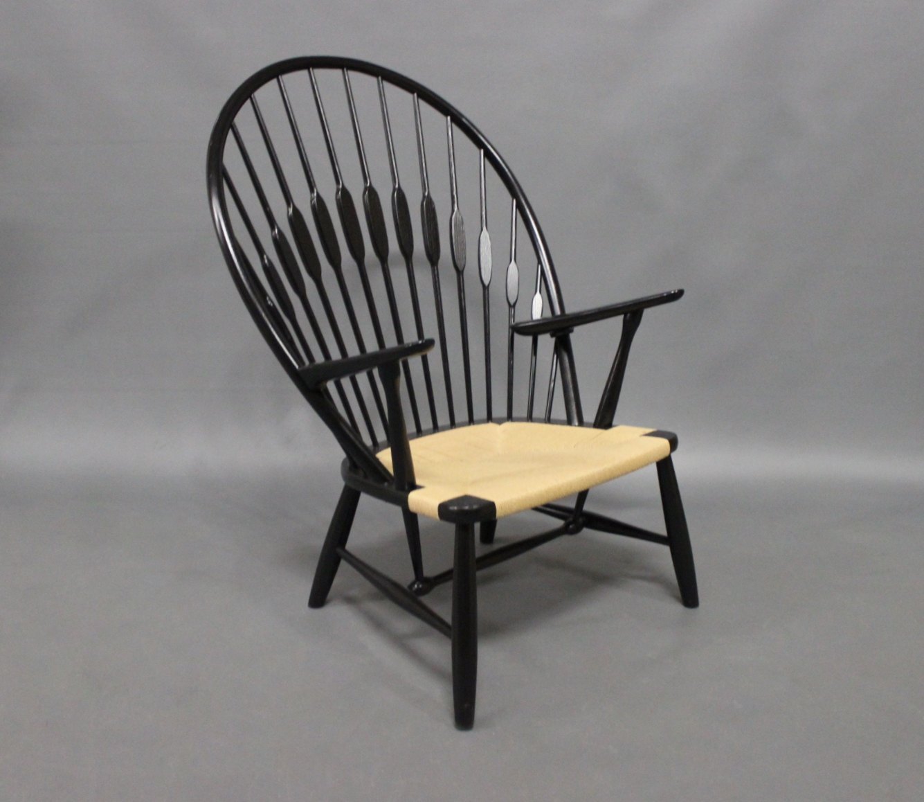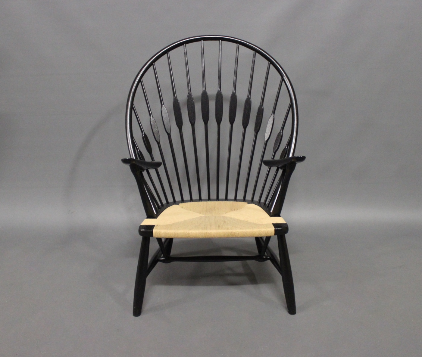 "Peacock" chair designed by Hans J. Wegner in 1947 and manufactured in the 1980s. The chair is of black lacquered ash and seat of papercord.