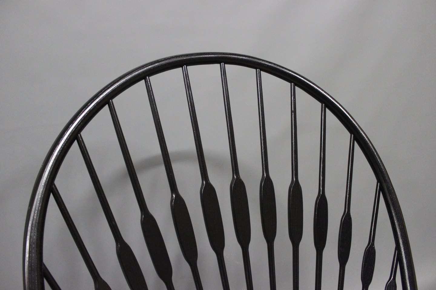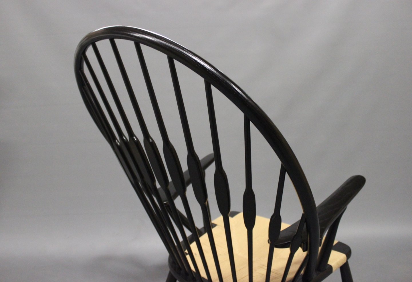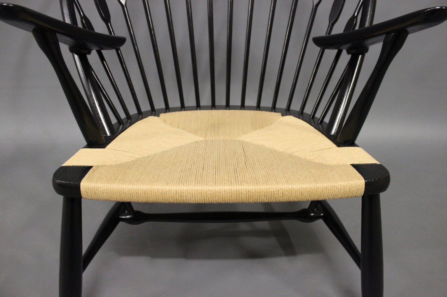 "Peacock" chair designed by Hans J. Wegner in 1947 and manufactured in the 1980s. The chair is of black lacquered ash and seat of papercord.