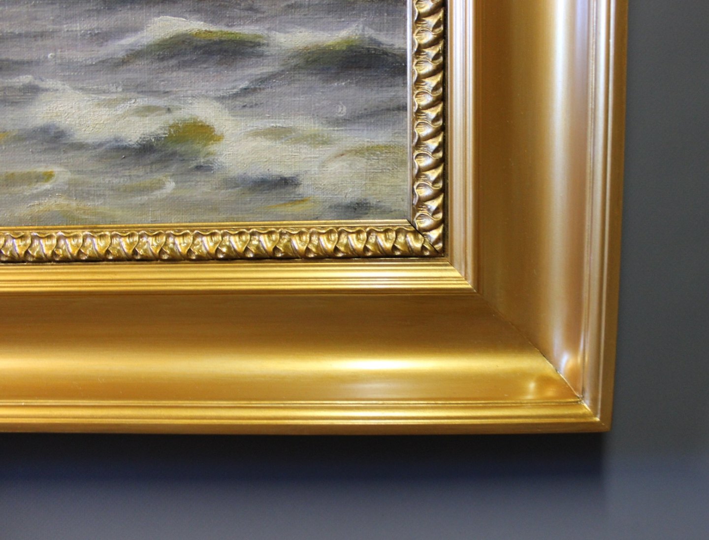 SoldPainting by marine painter Johan Neumann from around 1910. The painting shows Oeresund with the Danish Castle Kronborg in the background and has recently been restored.