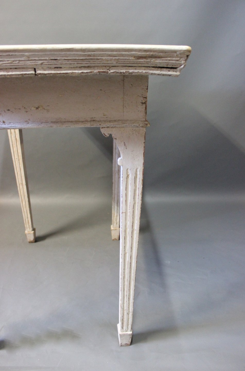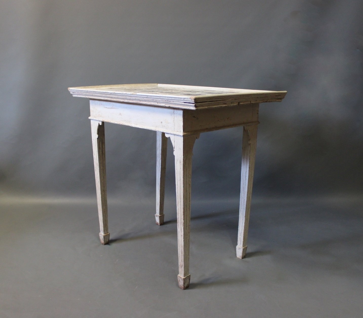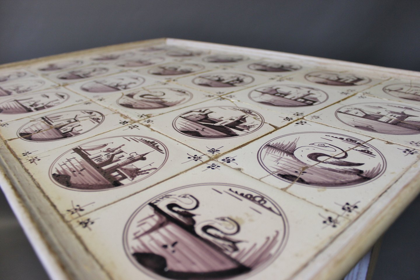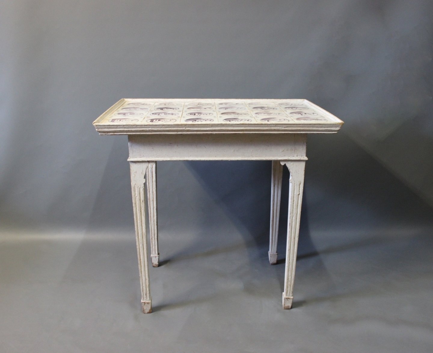Louis Seize tile-table with dutch tiles and grey painted wood from the 1780s.