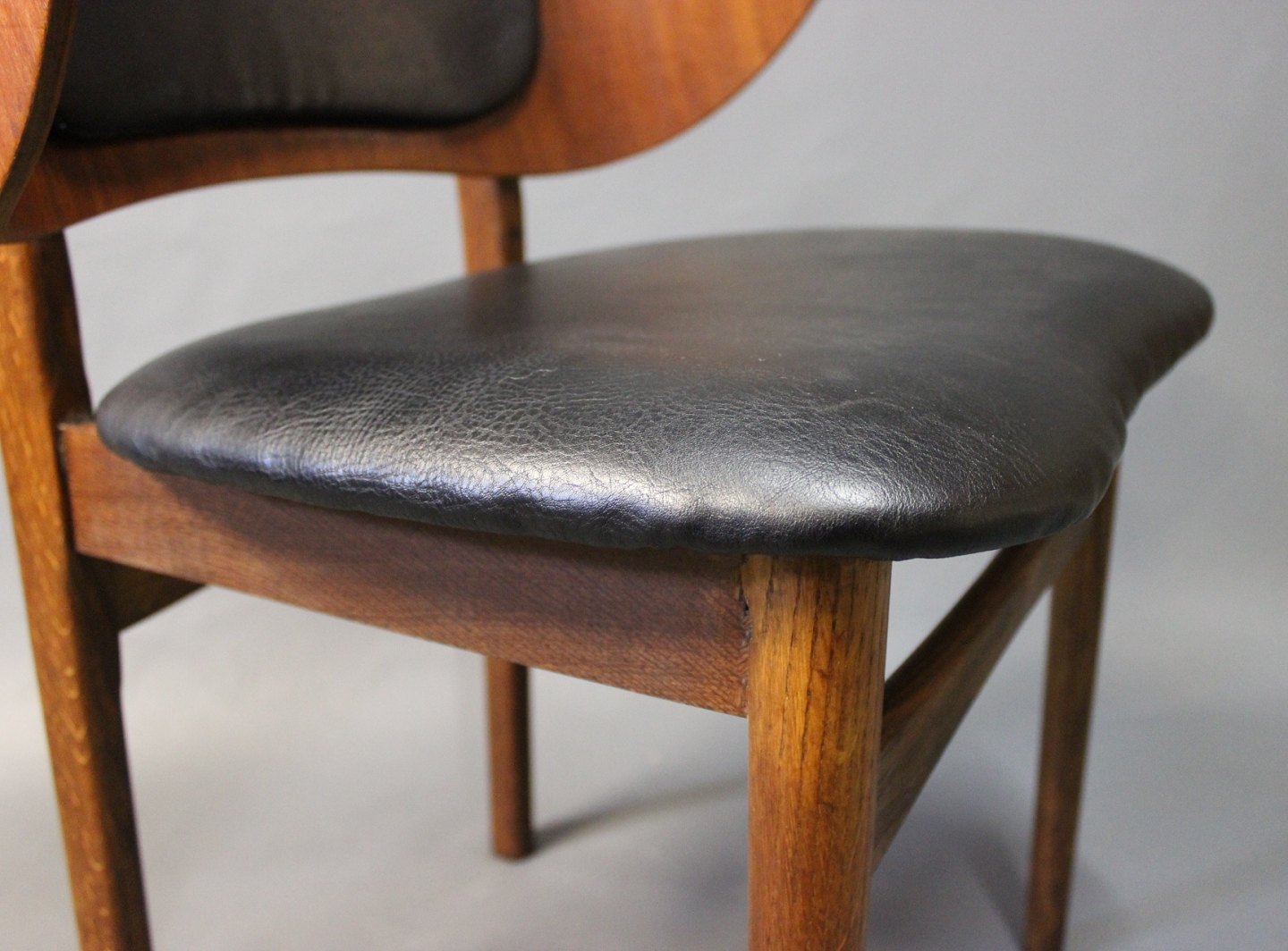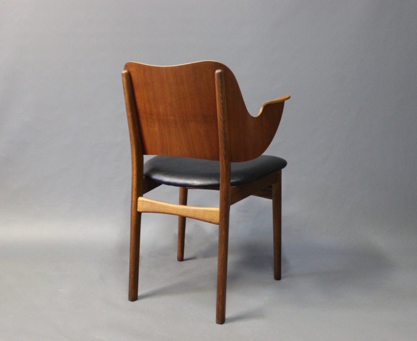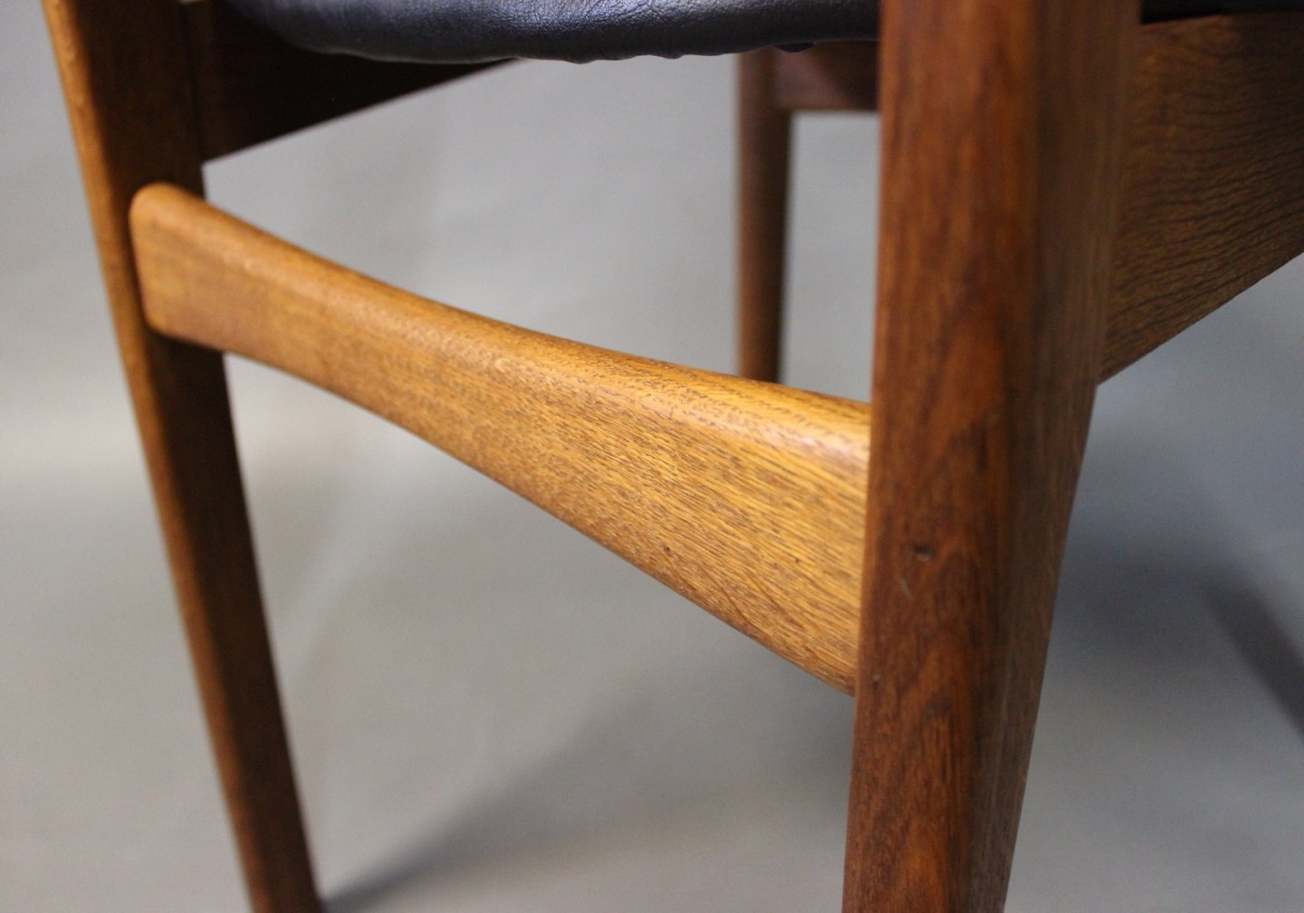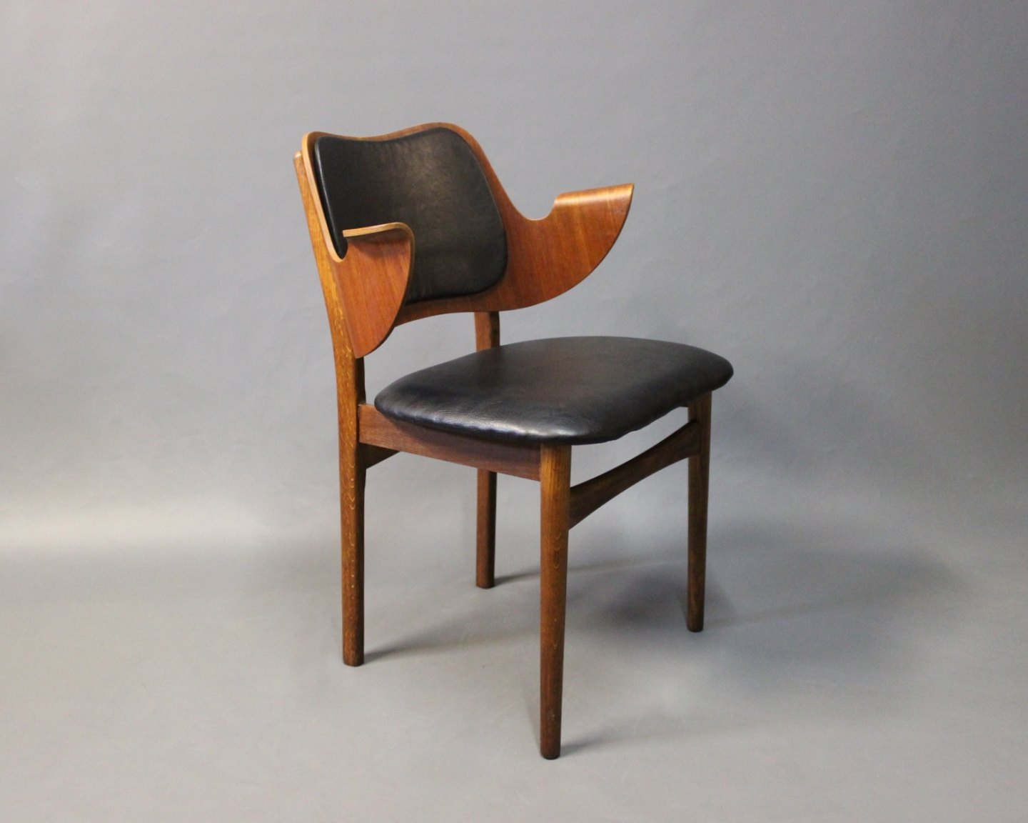 SoldA pair of armchairs designed by Arne Hovmand Olsen in teak and upholstered in black classic leather of Danish Design from the 1960s.