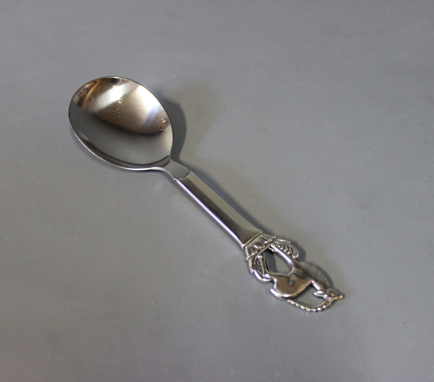 Server with animal motif, shaft of hallmarked silver and spoon of steel.