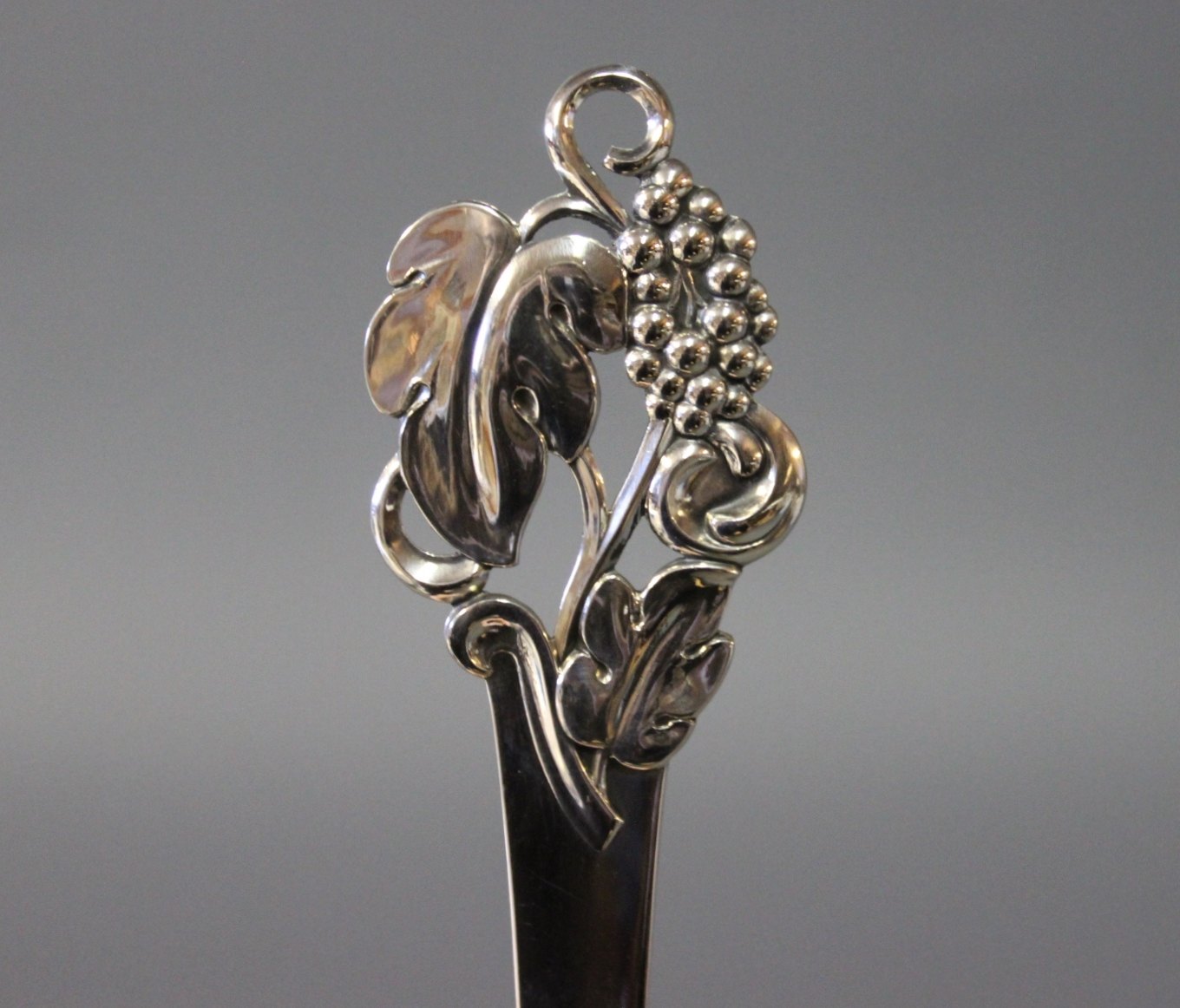 Server with grape motif, shaft of hallmarked silver and spoon of steel.