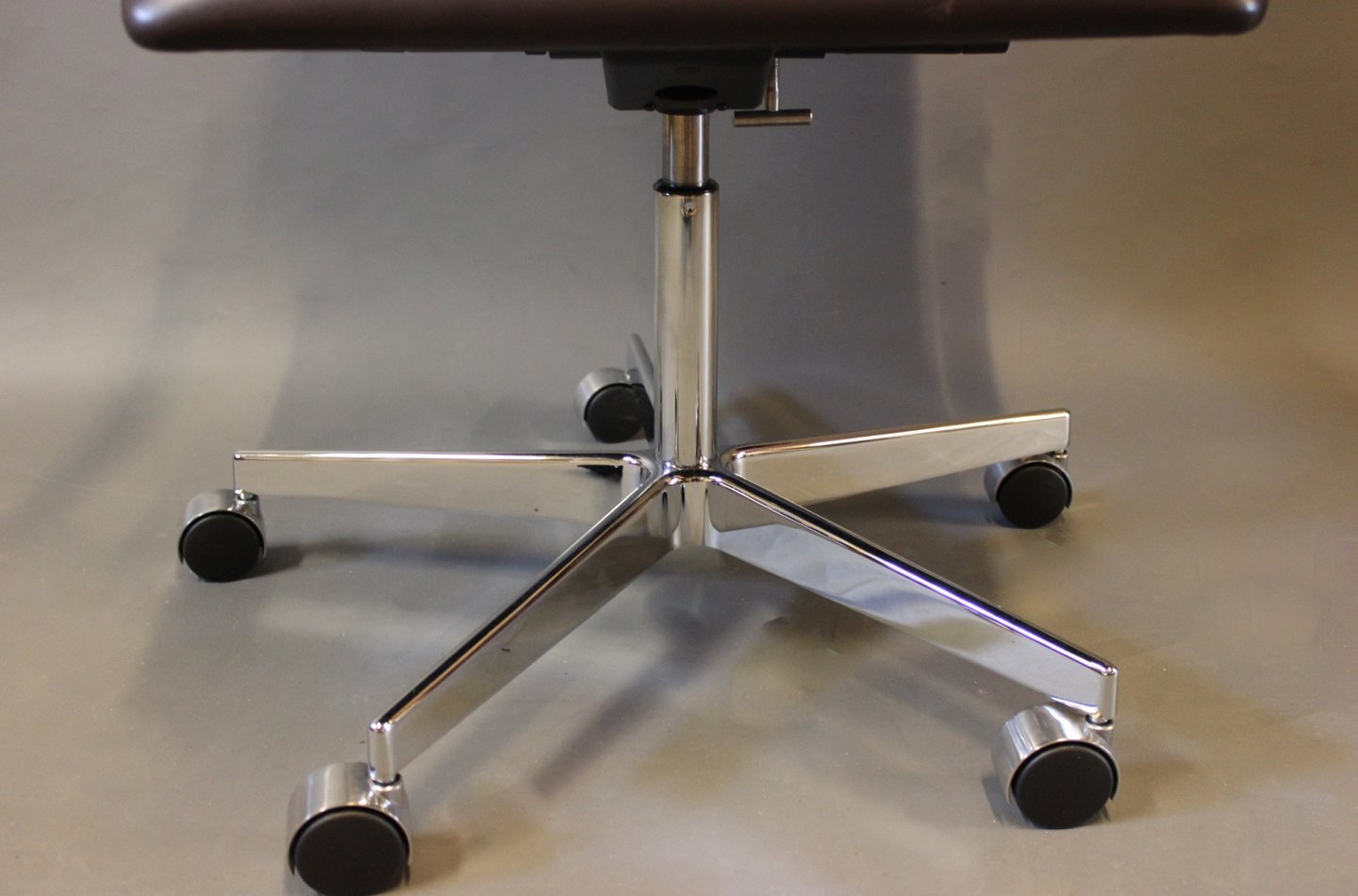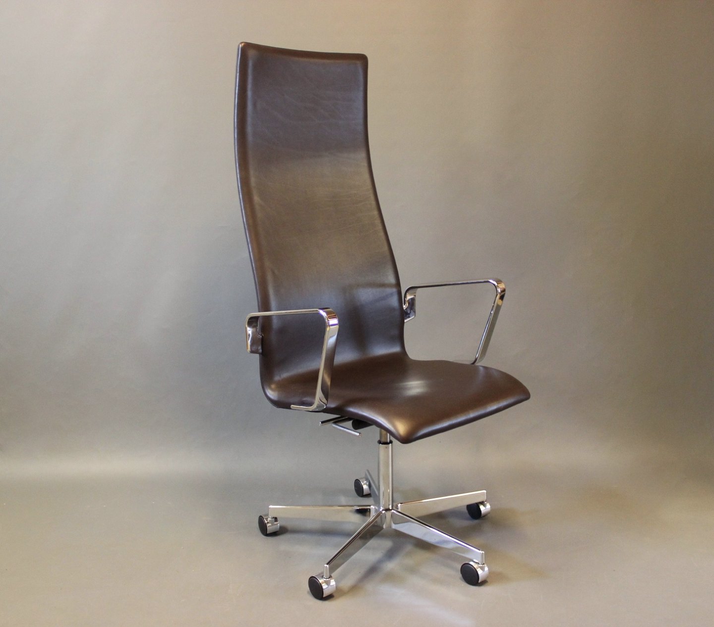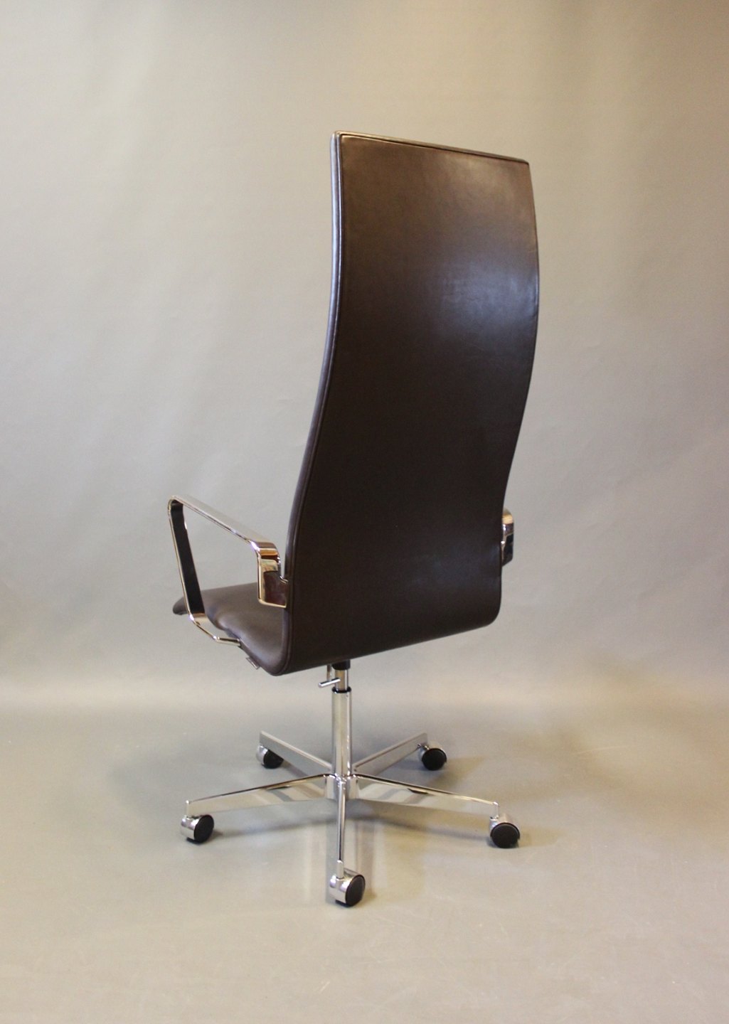 The Oxford classic office chair, model 3292C, in Dark brown elegance leather. Designed by Arne Jacobsen in 1963 and manufactured by Fritz Hansen. The chair is with original upholstery.