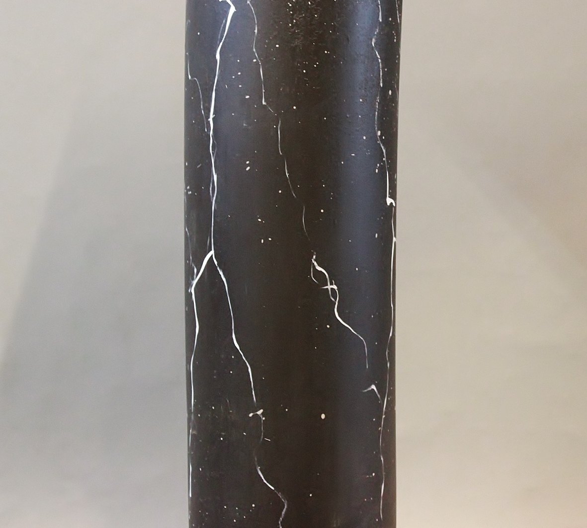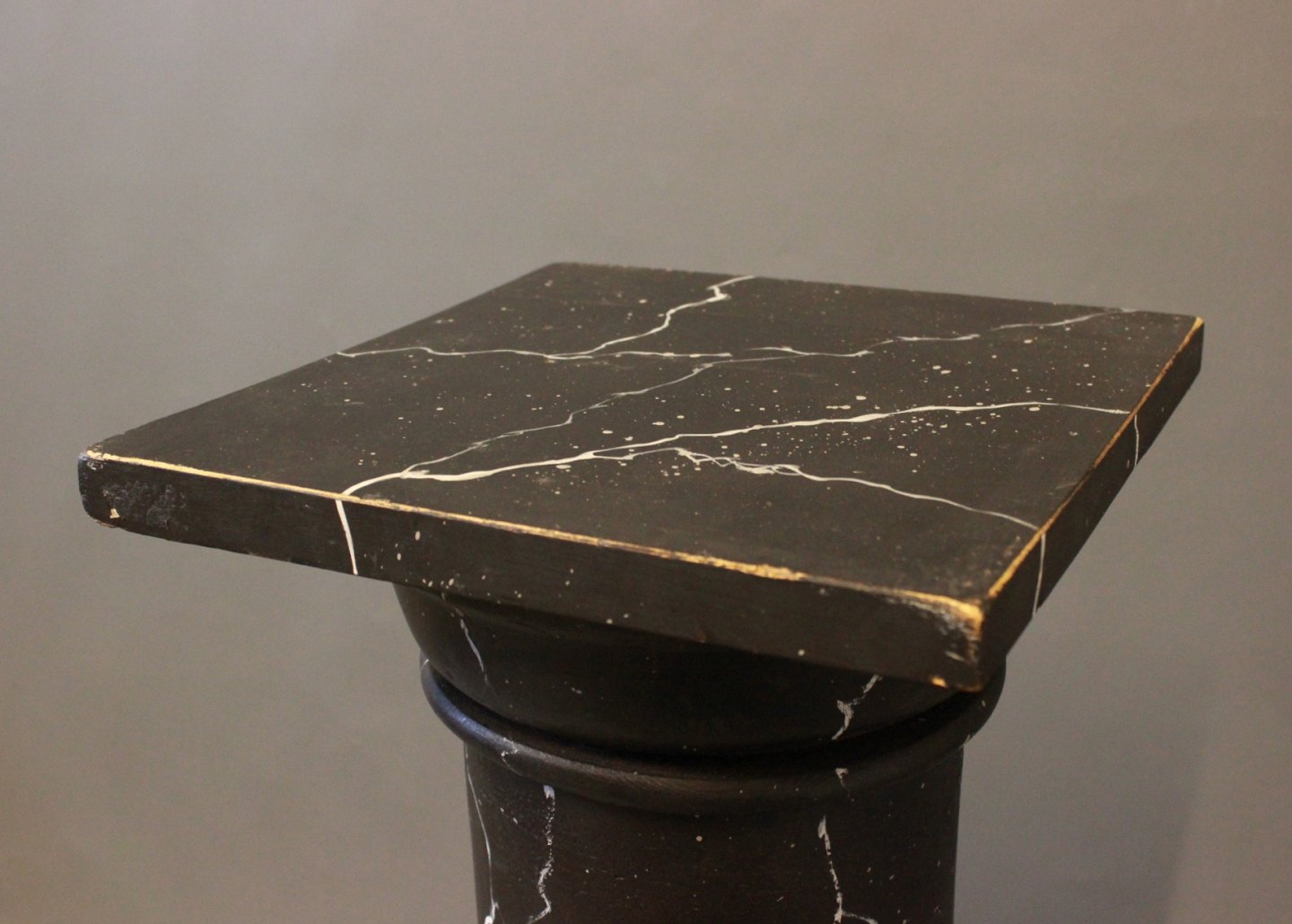 Marmoreret piedestal af sort og hvid malet træ fra omkring 1930erne.